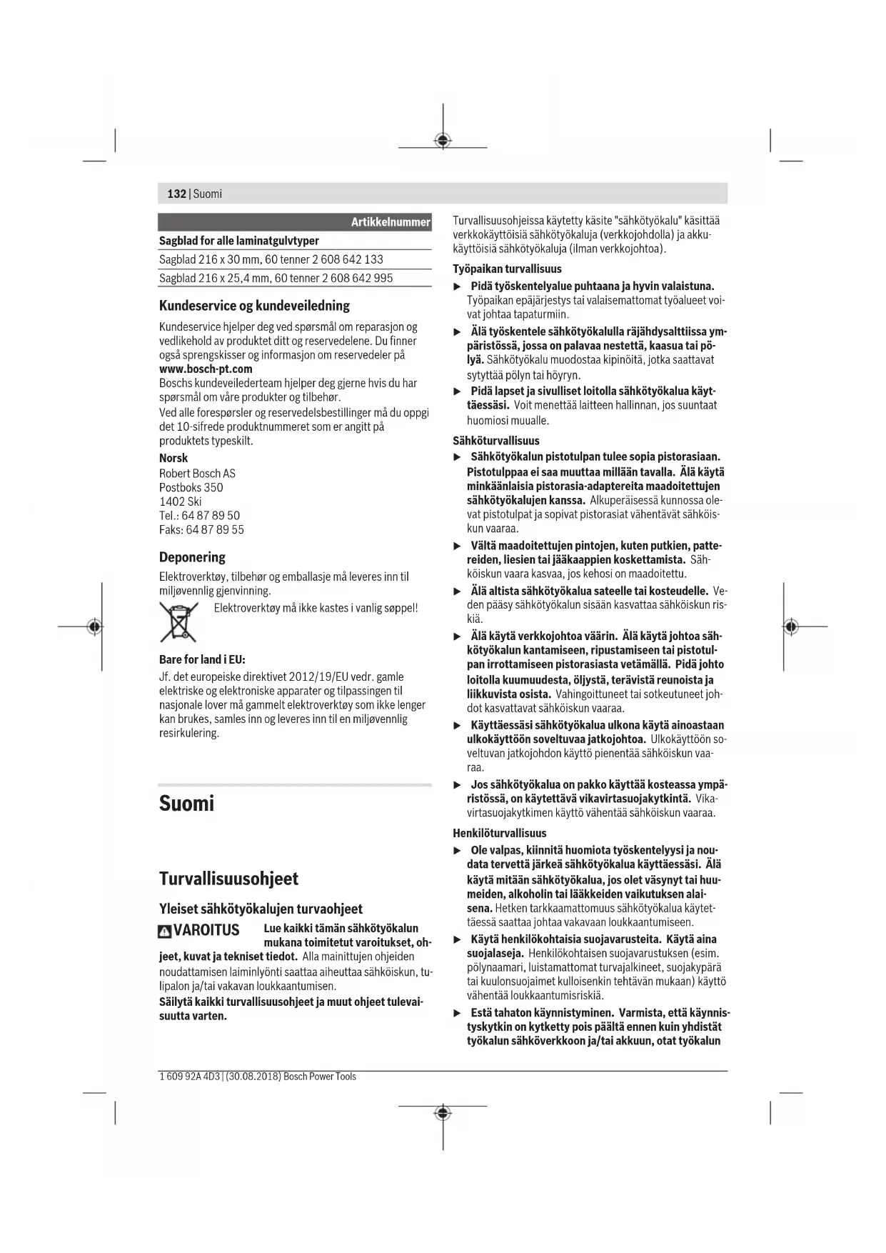 turvallisuussyistä vain Bosch-huolto tai Boschin valtuuttama