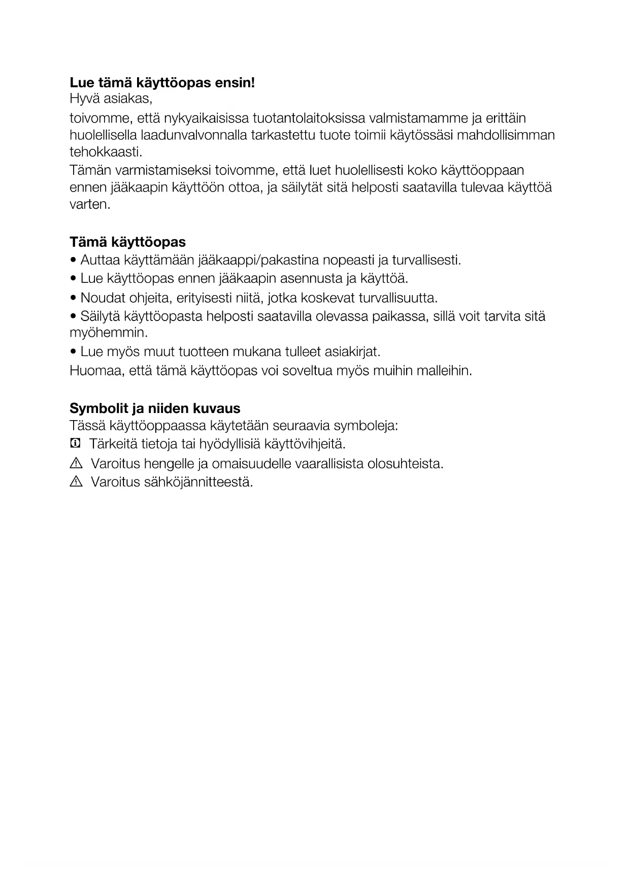 Tämän varmistamiseksi toivomme, että luet huolellisesti koko käyttöoppaan