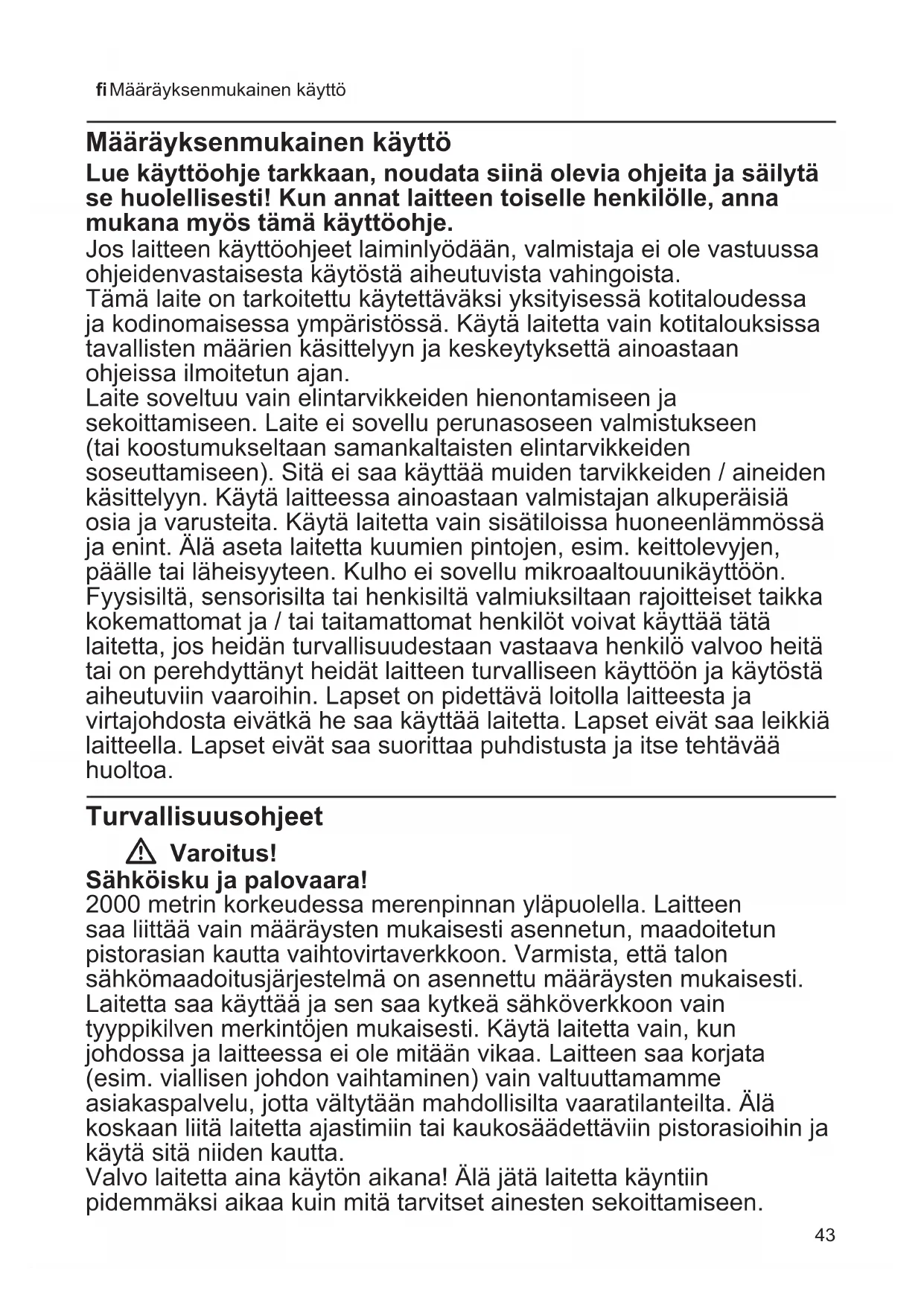 Turvallisuusohjeet 43