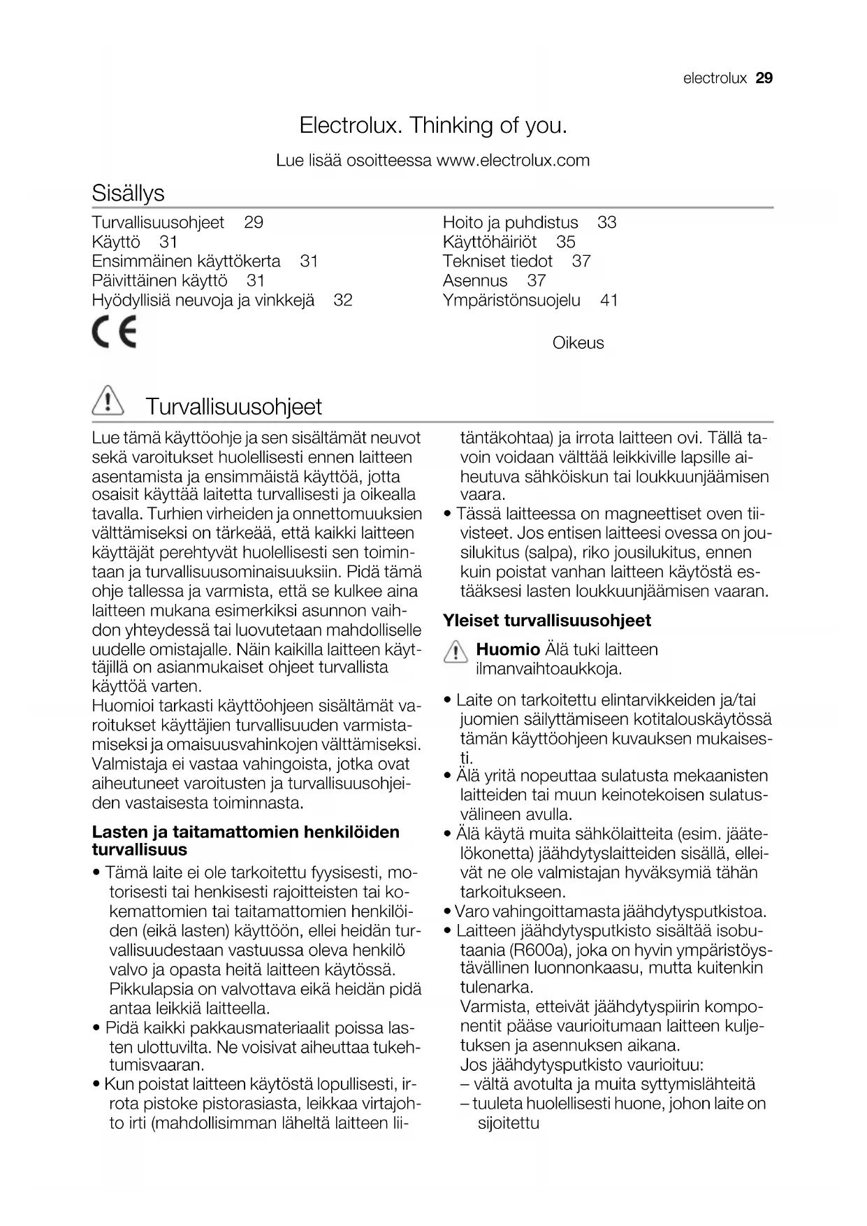 electrolux 29• Laitteen teknisten ominaisuuksien muutta-