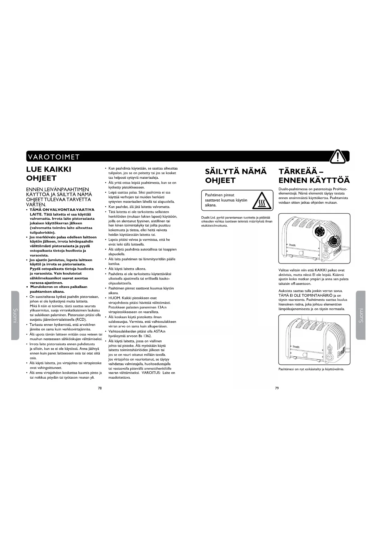 OHJEET Paahtimen pinnat saattavat kuumua käytön aikana. Dualit Ltd. pyrkii parantamaan tuotteita ja pidättää oikeuden vaihtaa tuotteen teknisiä määrityksiä ilman etukäteisilmoitusta. TÄRKEÄÄ –
