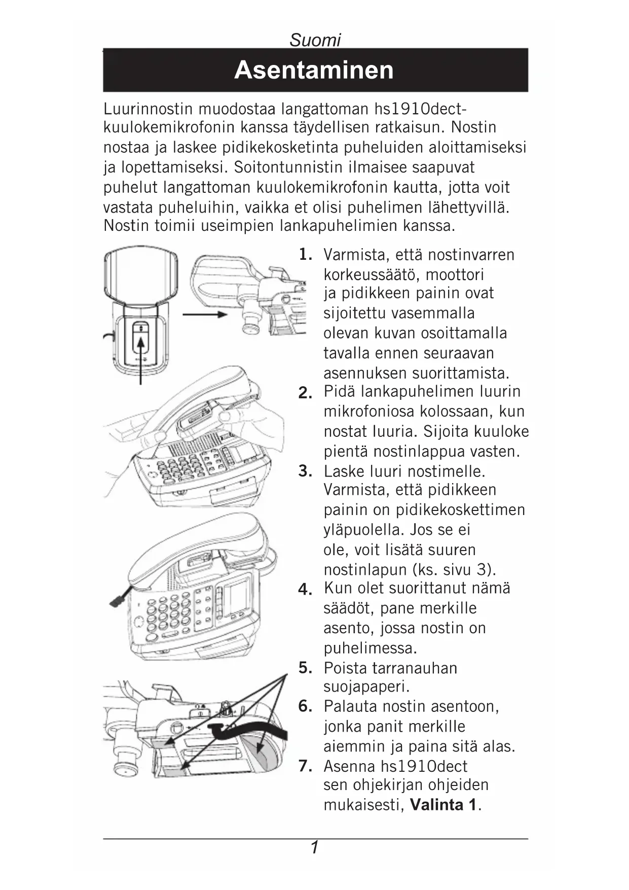 - Aseta puhelimen luuri nostinvarrelle.