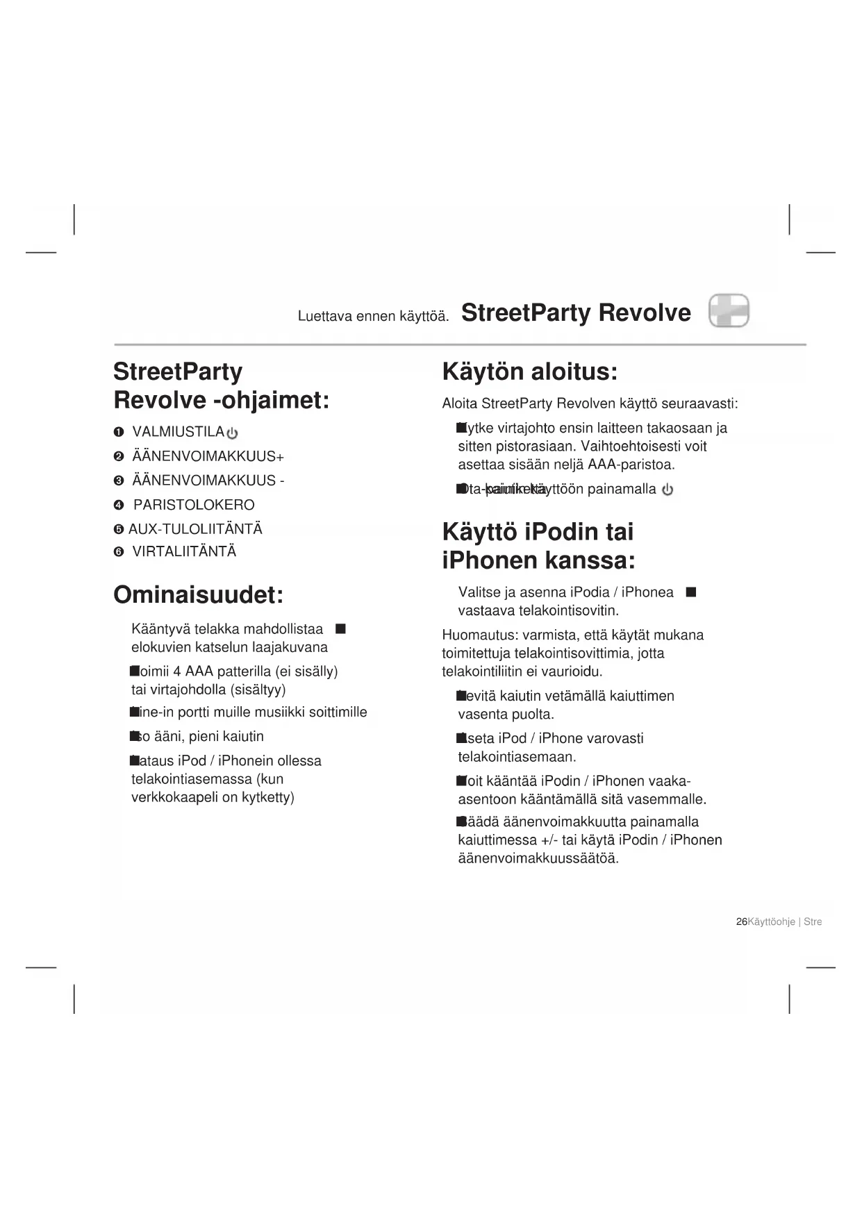 Luettava ennen käyttöä. StreetParty Revolve