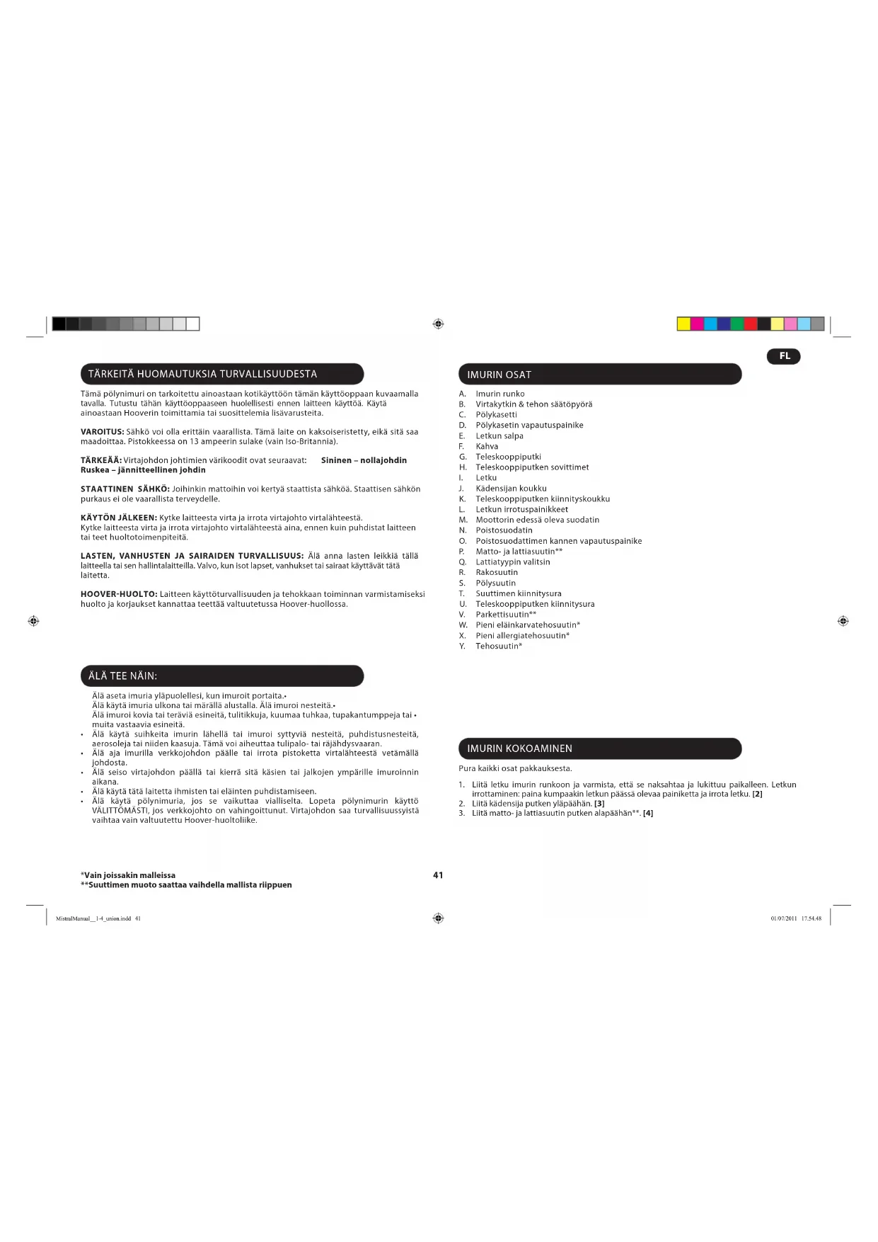 HOOVERHUOLTO: Laitteen käyttöturvallisuuden ja tehokkaan toiminnan varmistamiseksi