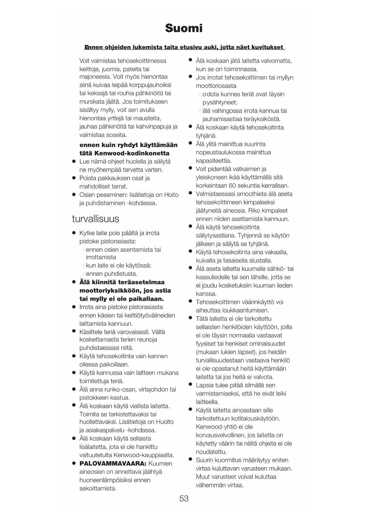 Älä koskaan käytä tehosekoitinta