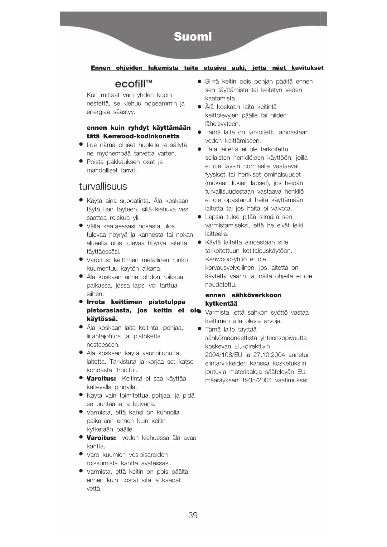 Téléchargez la notice de votre Vedenkeitin au format PDF gratuitement ! Retrouvez votre notice SJM160 - KENWOOD et reprennez votre appareil électronique en main. Sur cette page sont publiés tous les documents nécessaires à l'utilisation de votre appareil SJM160 de la marque KENWOOD.