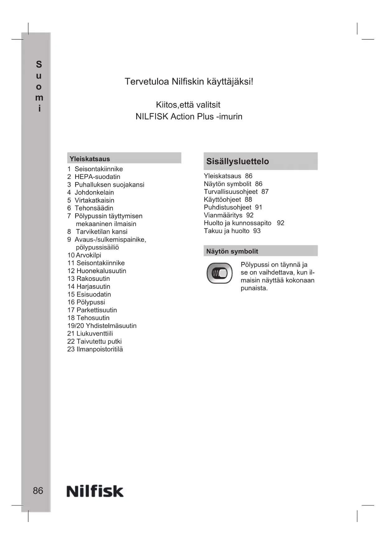 KÄYTTÖOHJE Action Plus Pet PACK NILFISK