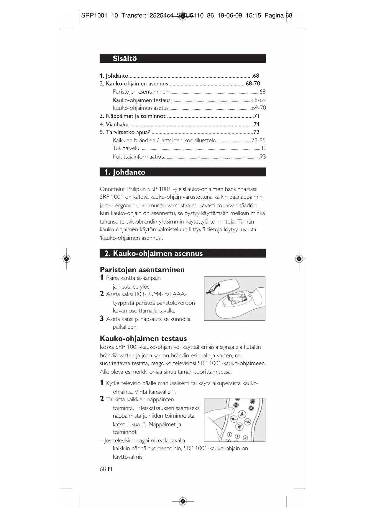68 FI SRP1001_10_Transfer:125254c4_SRU5110_86 19-06-09 15:15 Pagina 68• Jos laite ei reagoi lainkaan tai ei reagoi kaikkiin