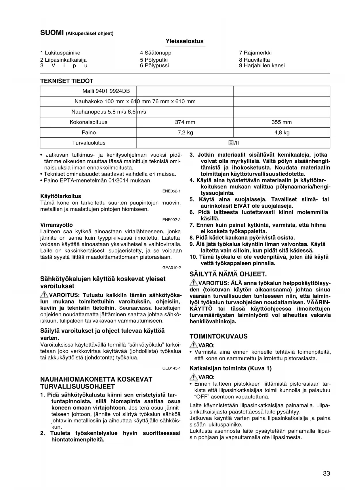 KÄYTTÖOHJE 9924DB MAKITA