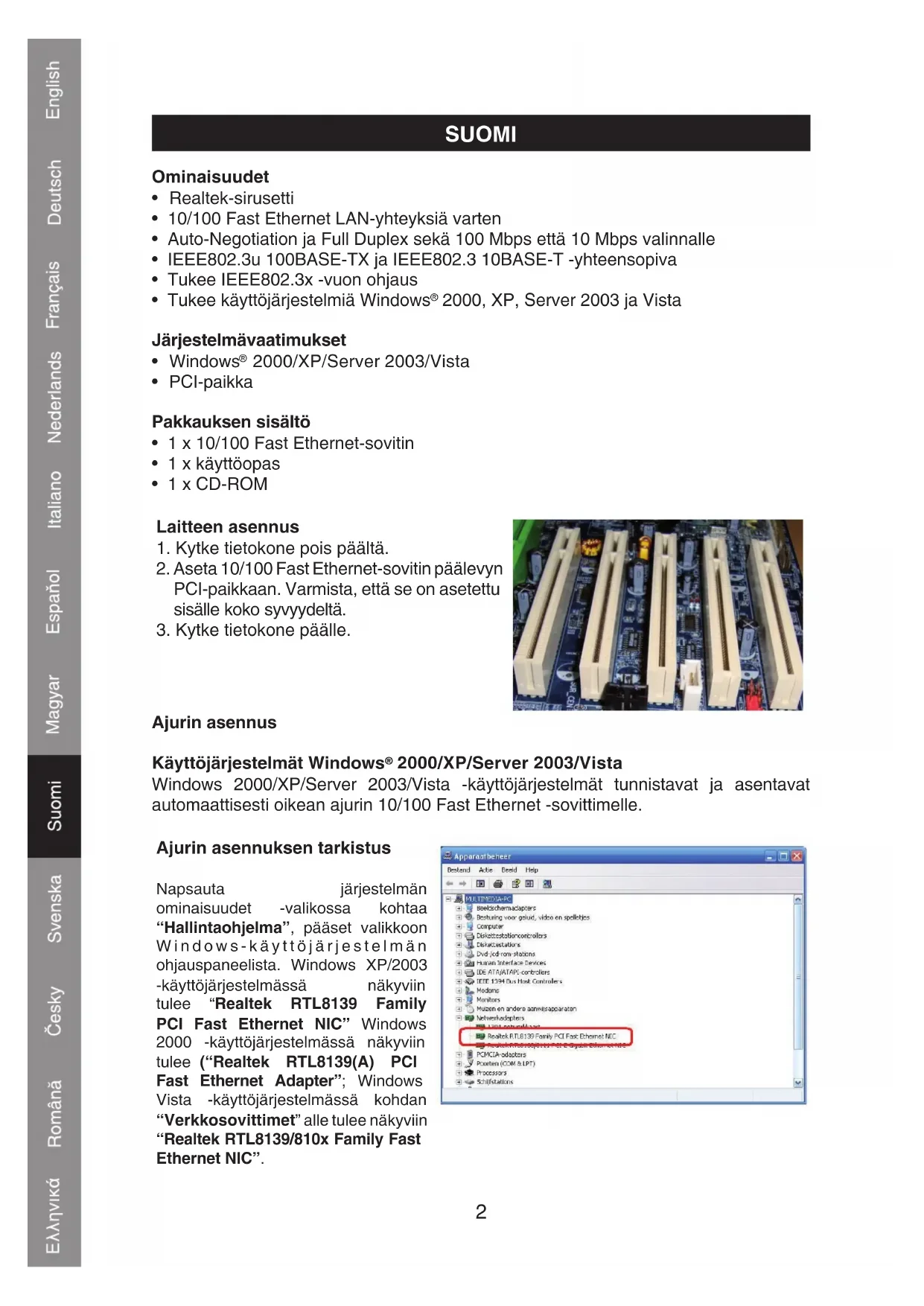 2. Aseta 10/100 Fast Ethernet-sovitin päälevyn