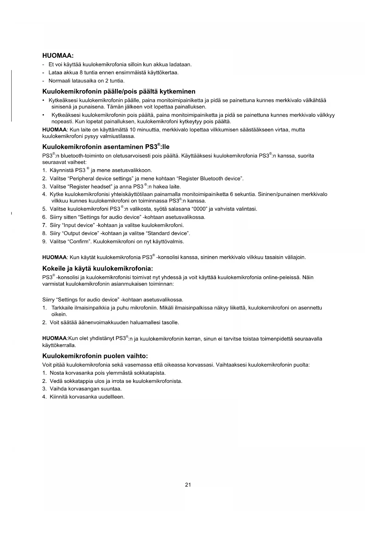 HUOMAA: Kun käytät kuulokemikrofonia PS3