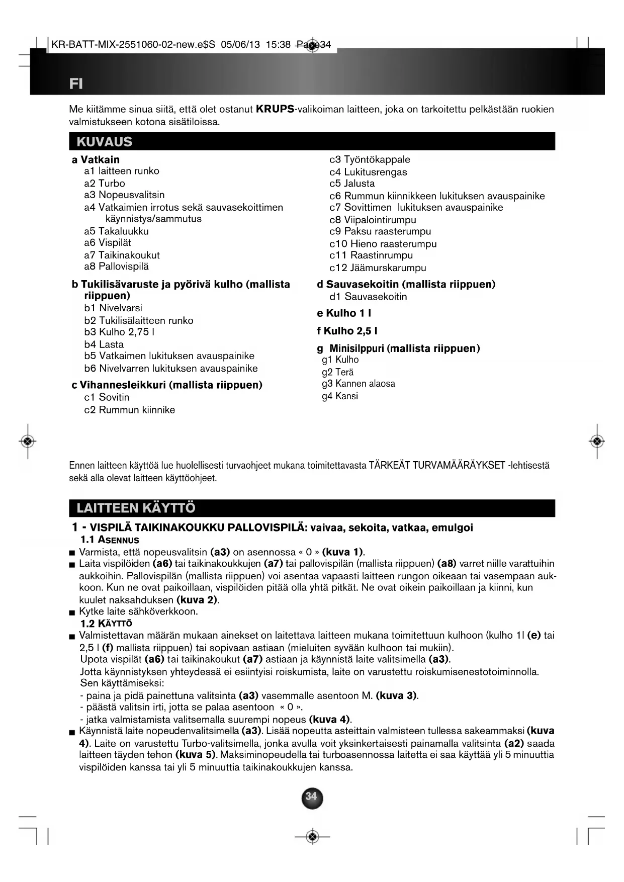 sekä alla olevat laitteen käyttöohjeet. KR-BATT-MIX-2551060-02-new.e$S 05/06/13 15:38 Page34FI