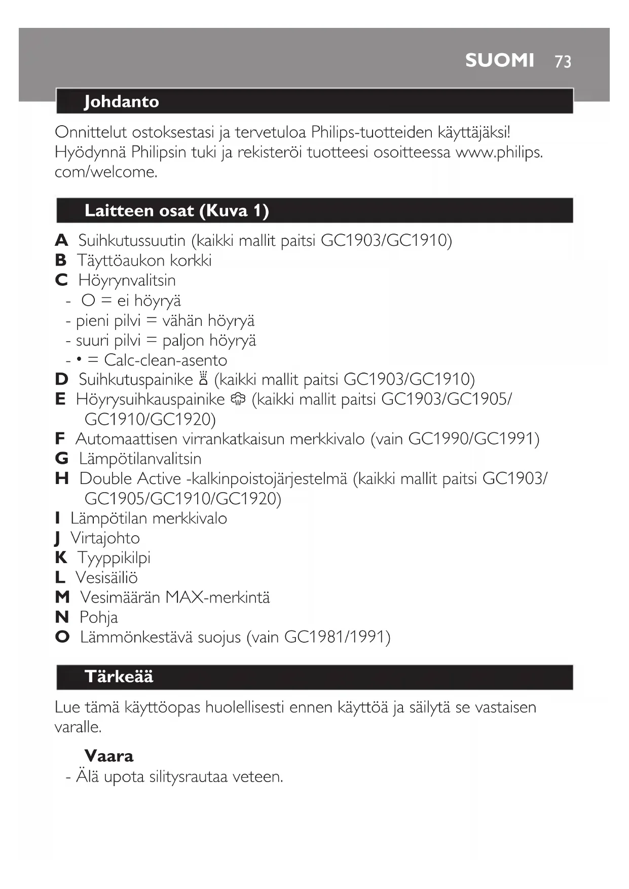 KÄYTTÖOHJE EasySpeed GC1980 PHILIPS