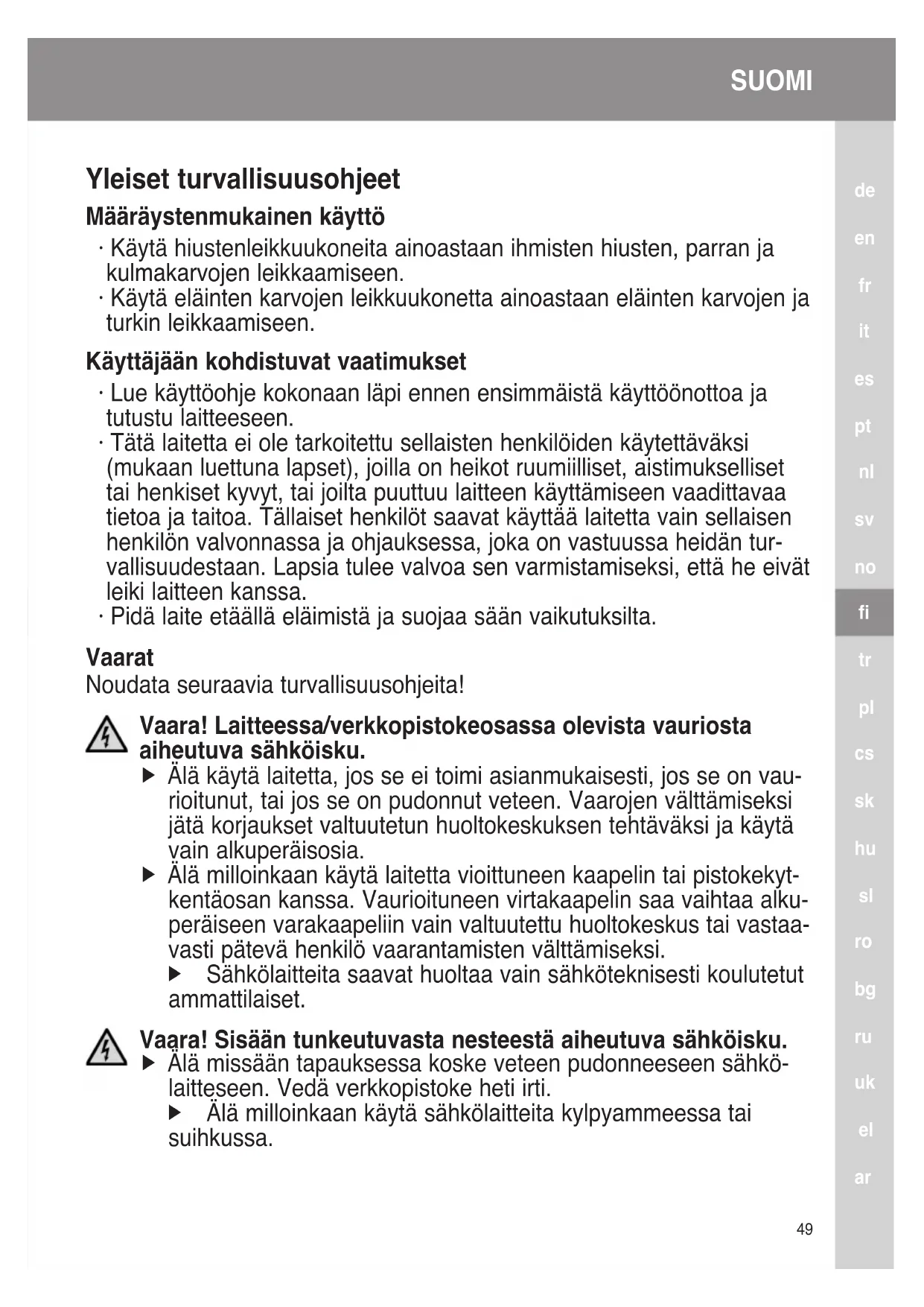 · Käytä eläinten karvojen leikkuukonetta ainoastaan eläinten karvojen ja