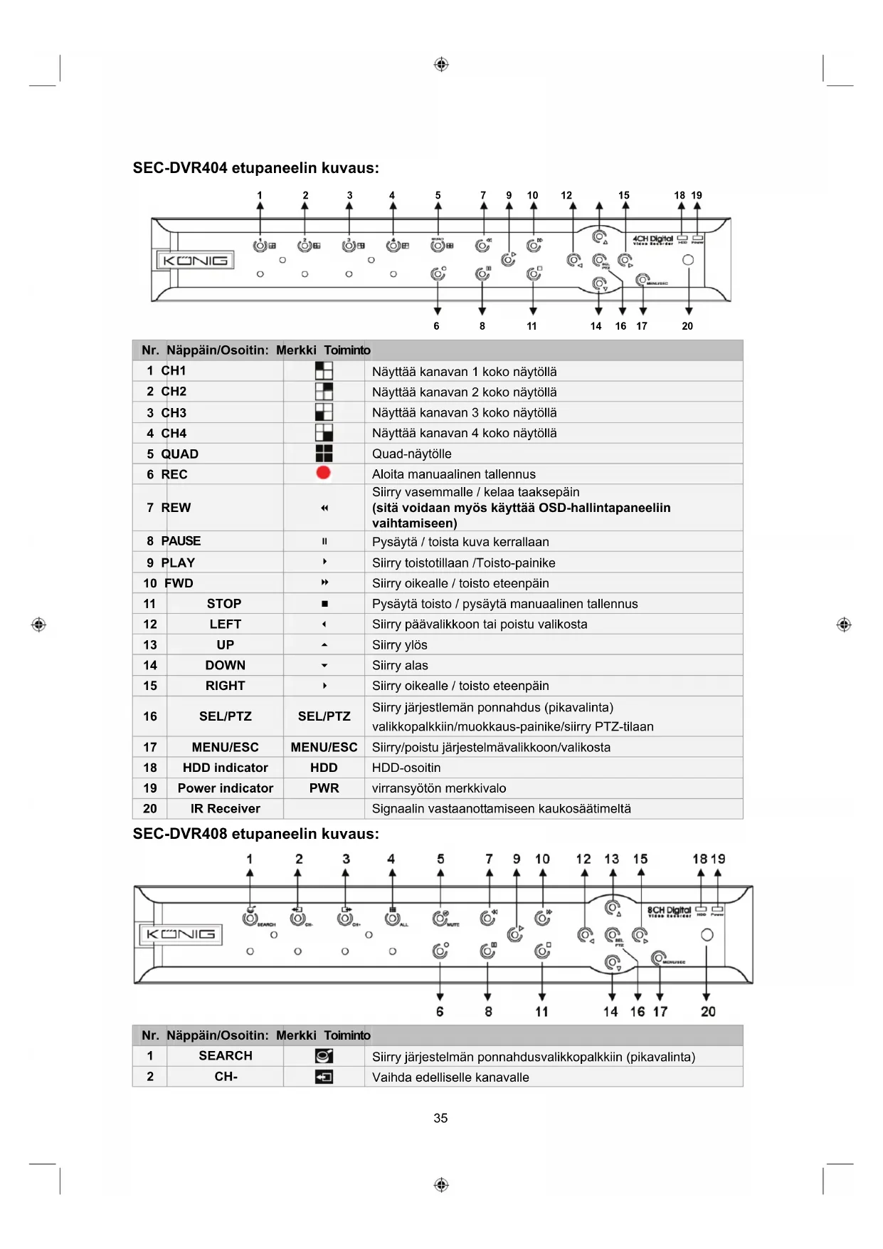 Löydä laitteen käyttöohje ilmaiseksi SECDVR404 KONIG PDF-muodossa.