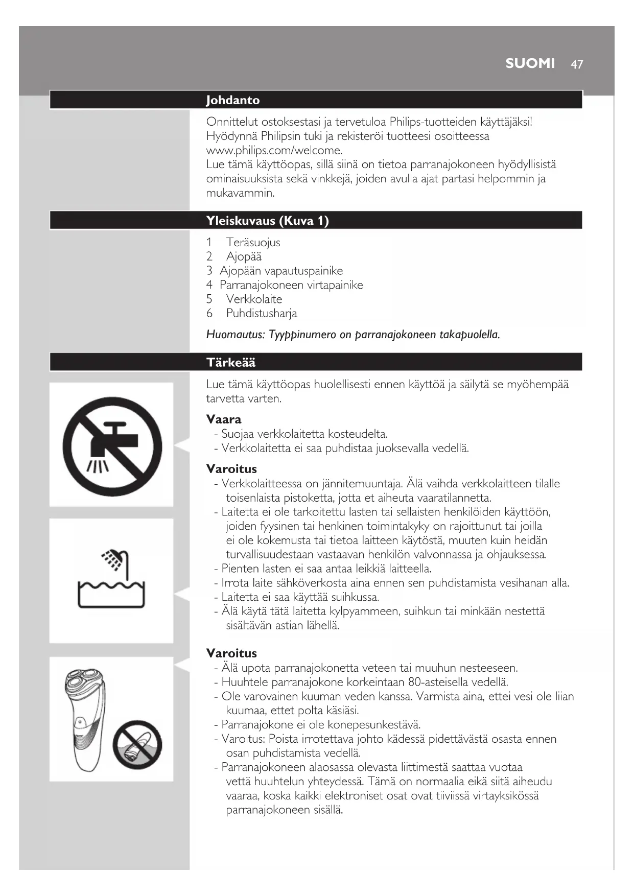 SUOMI- Älä käytä parranajokonetta tai verkkolaitetta, jos se on vahingoittunut,