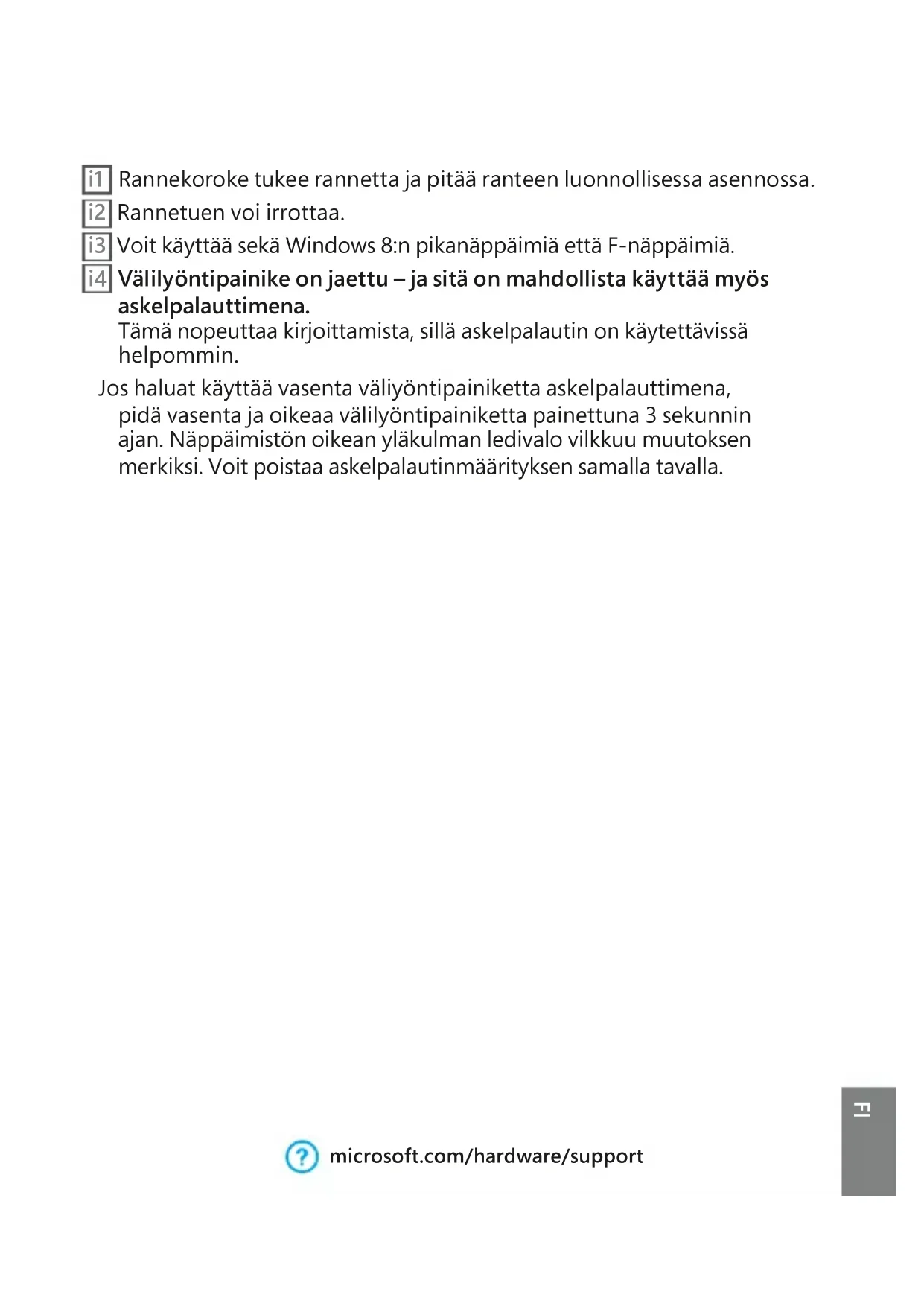 Téléchargez la notice de votre Näppäimistö au format PDF gratuitement ! Retrouvez votre notice Sculpt Comfort Desktop - MICROSOFT et reprennez votre appareil électronique en main. Sur cette page sont publiés tous les documents nécessaires à l'utilisation de votre appareil Sculpt Comfort Desktop de la marque MICROSOFT.