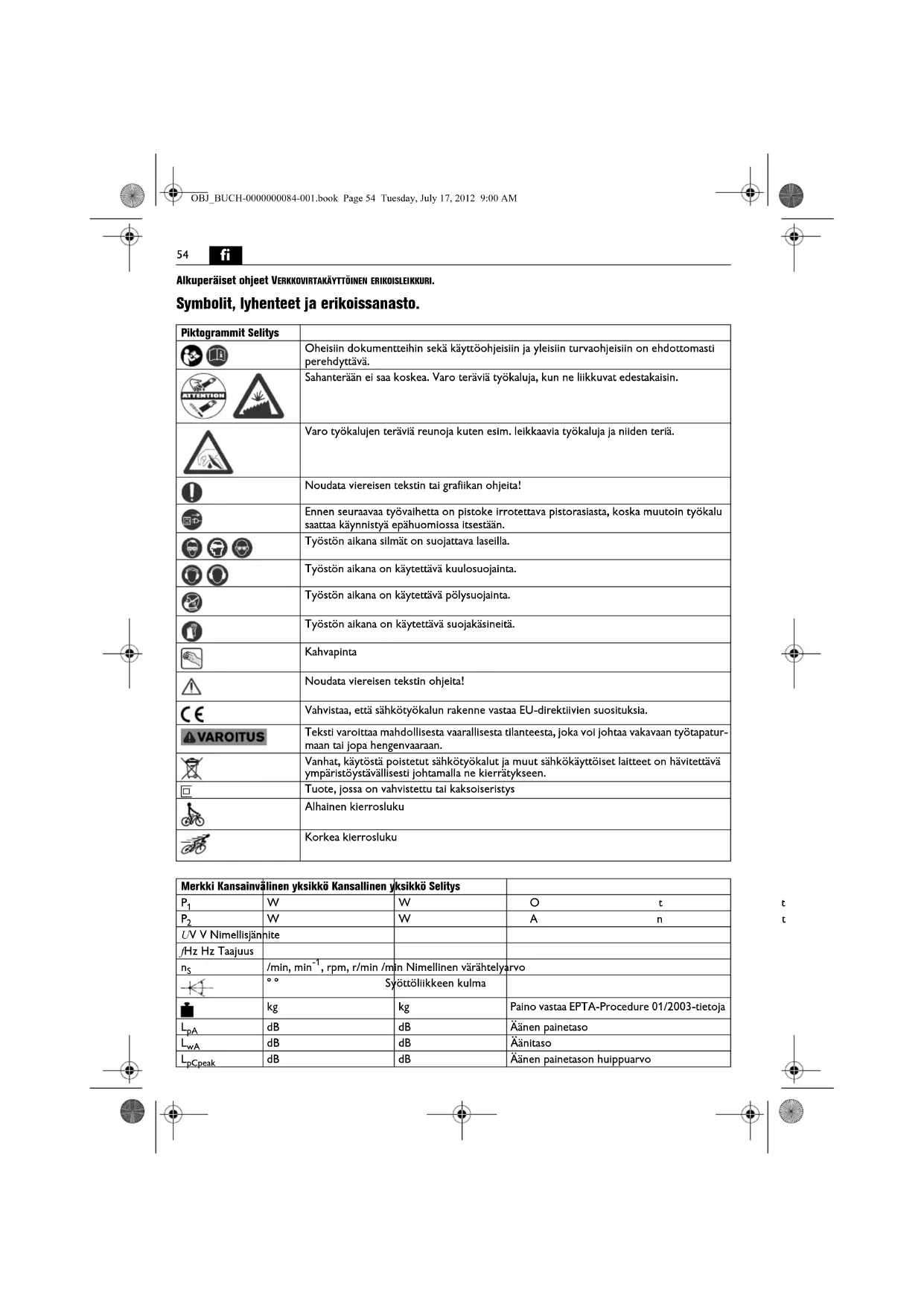 Sähkütyökalua eia saa sunnata suorana itseen, muihin henkilöihin tai elämäin pän. Teravista tai kuumentu-neista työkaluista aiheetu tapatmur vaara.