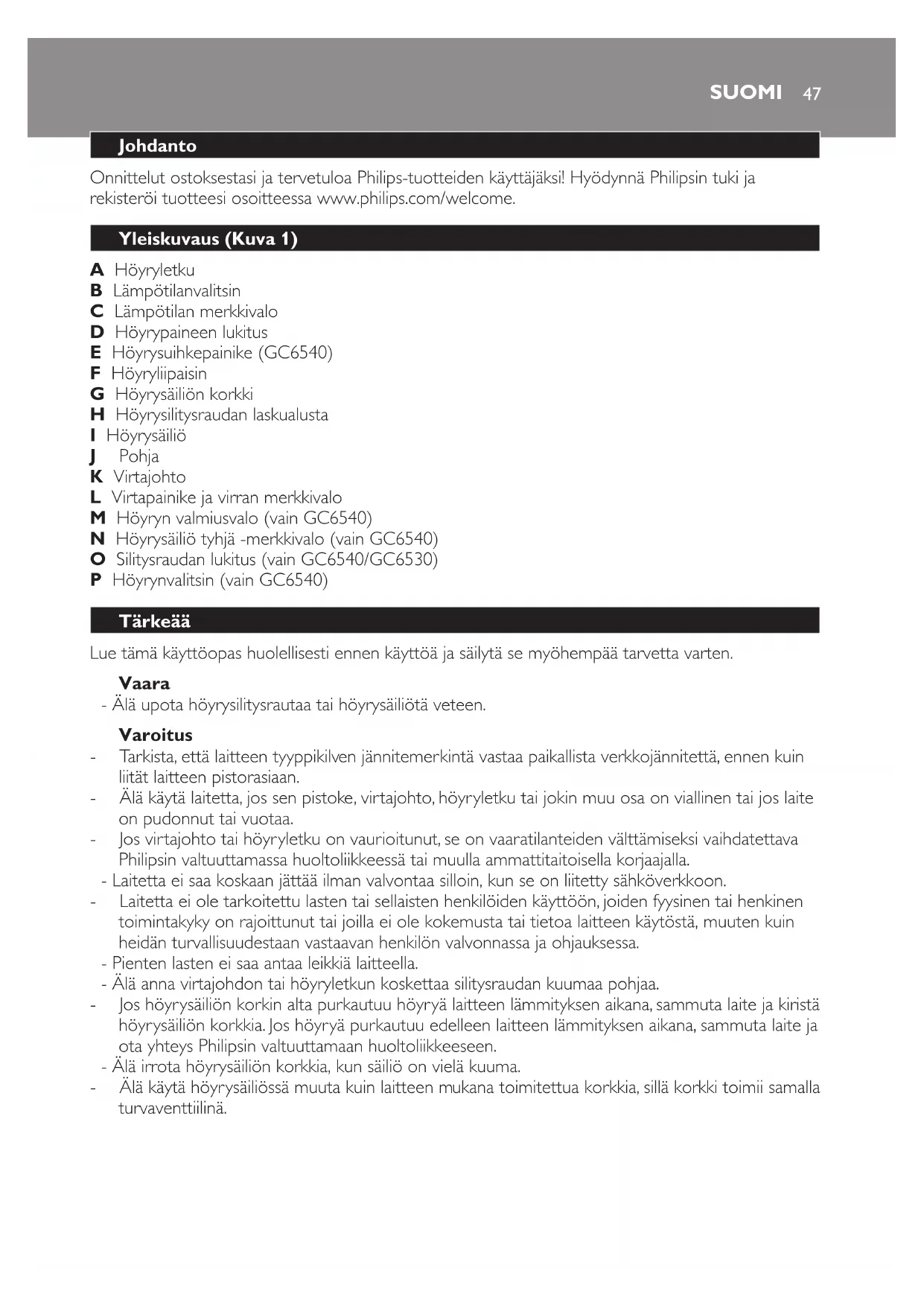 KÄYTTÖOHJE CompactCare GC6540 PHILIPS