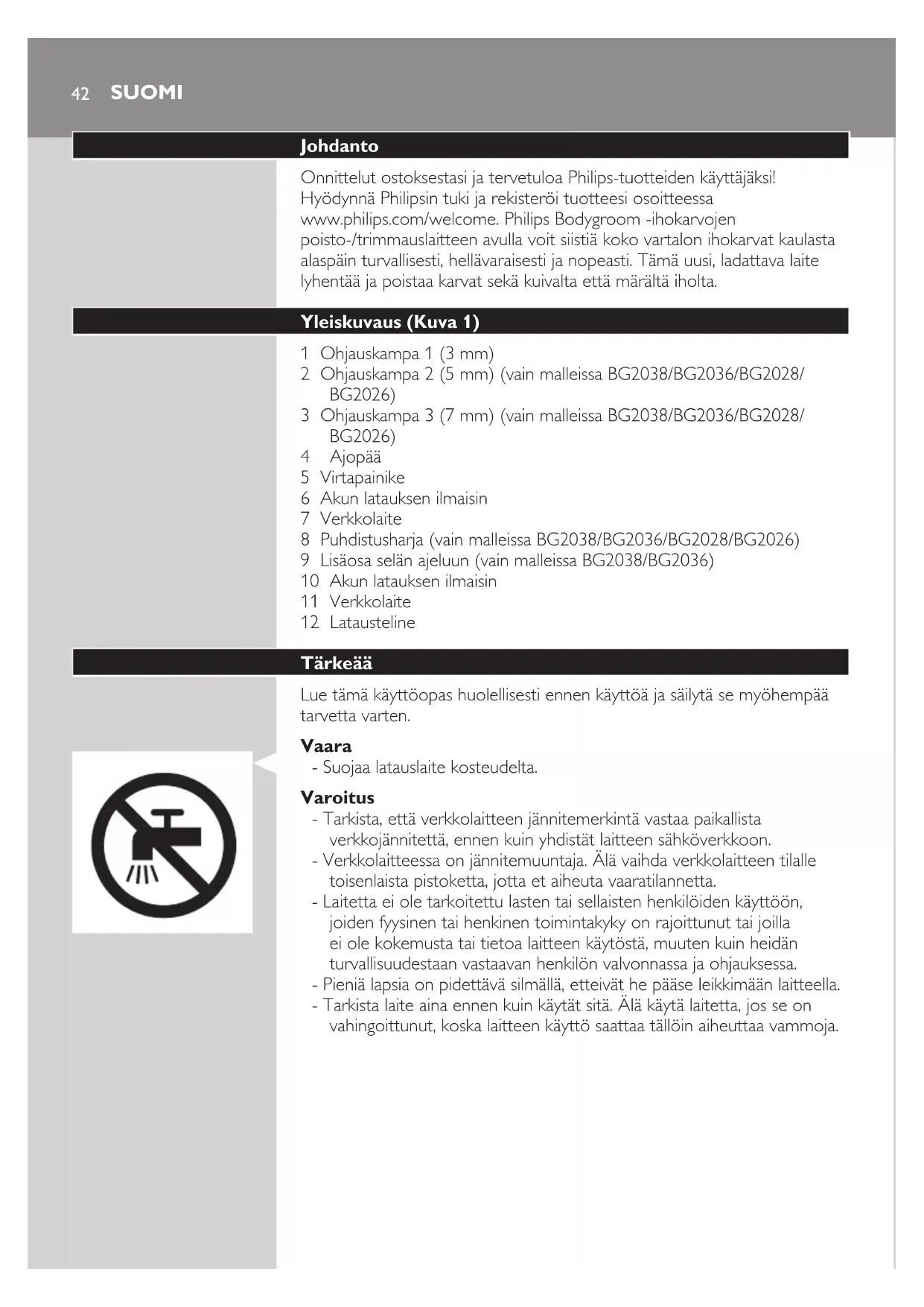 Löydä laitteen käyttöohje ilmaiseksi Bodygroom Series 3000 BG2026 PHILIPS PDF-muodossa.