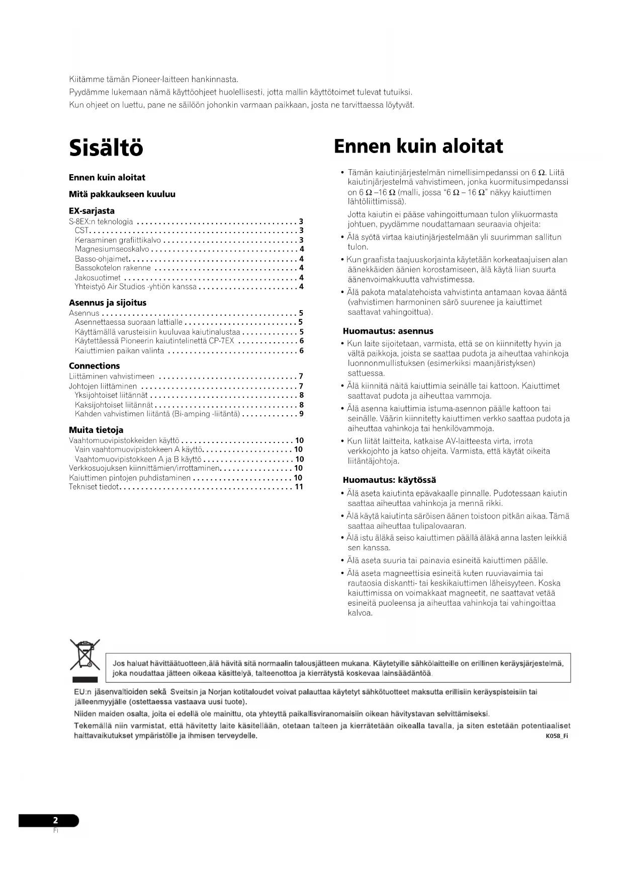Käytettäessä Pioneerin kaiutintelinettä CP-7EX . . . . . . . . . . . . . . 6