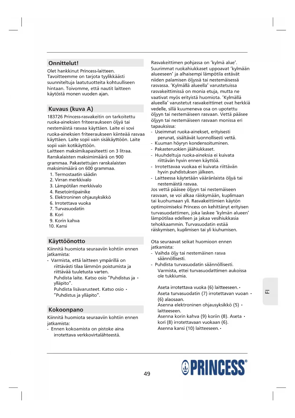 183726 Princess-rasvakeitin on tarkoitettu