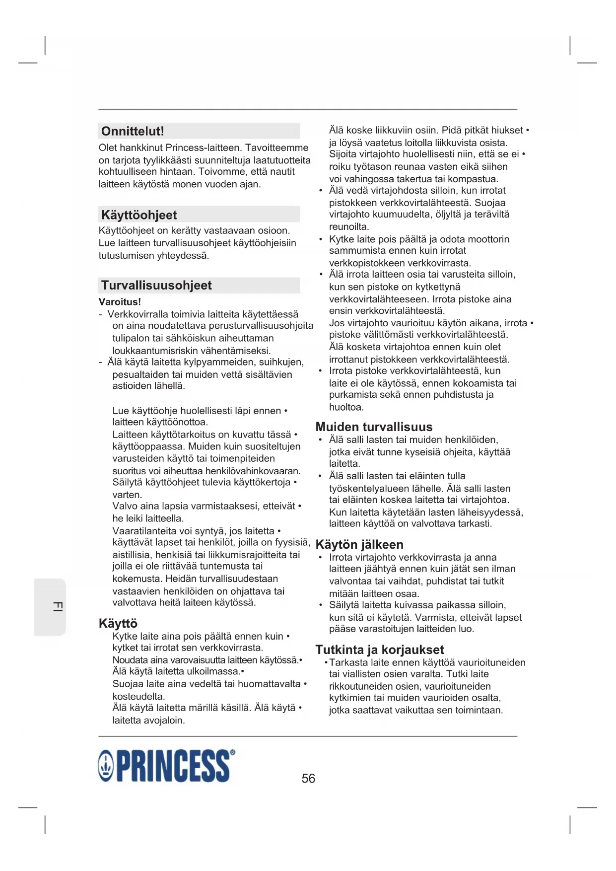 KÄYTTÖOHJE 321200 PRINCESS