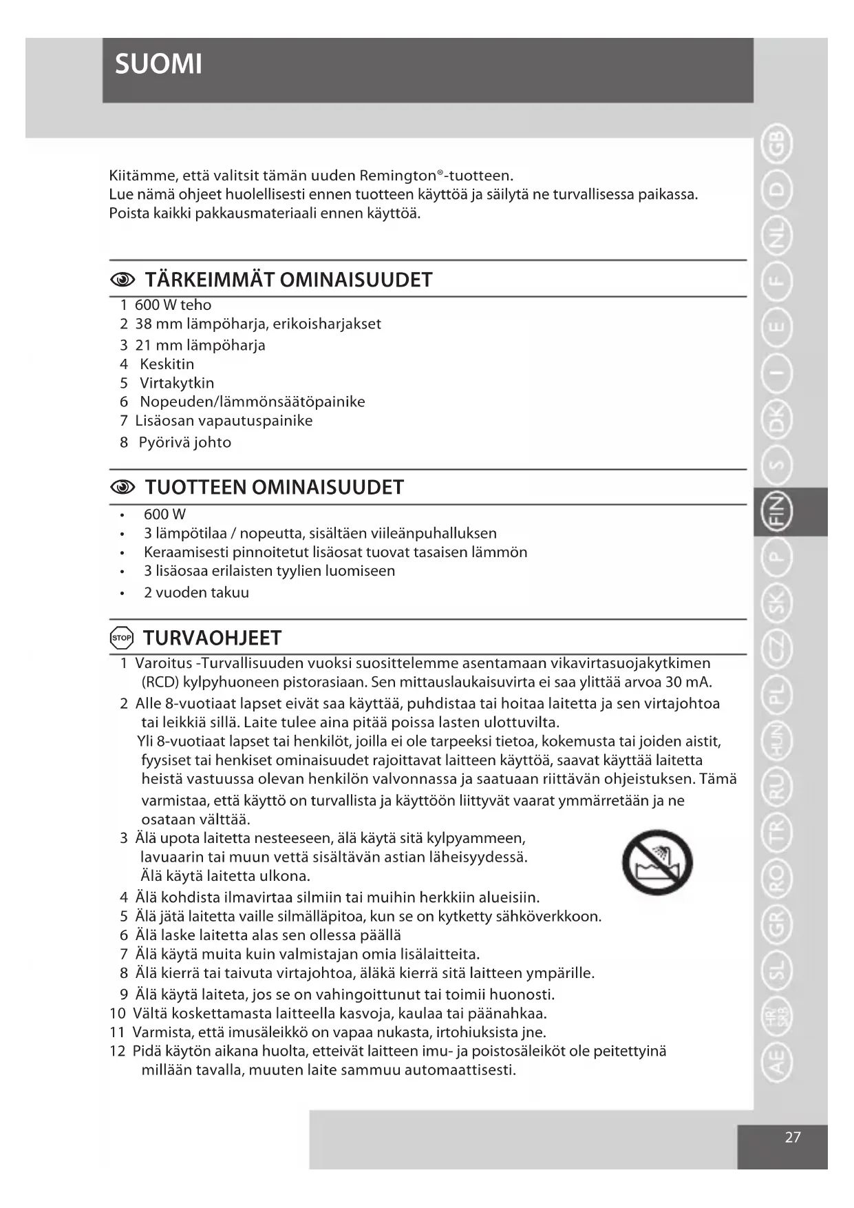SUOMI Kiitämme, että valitsit tämän uuden Remington®-tuotteen.