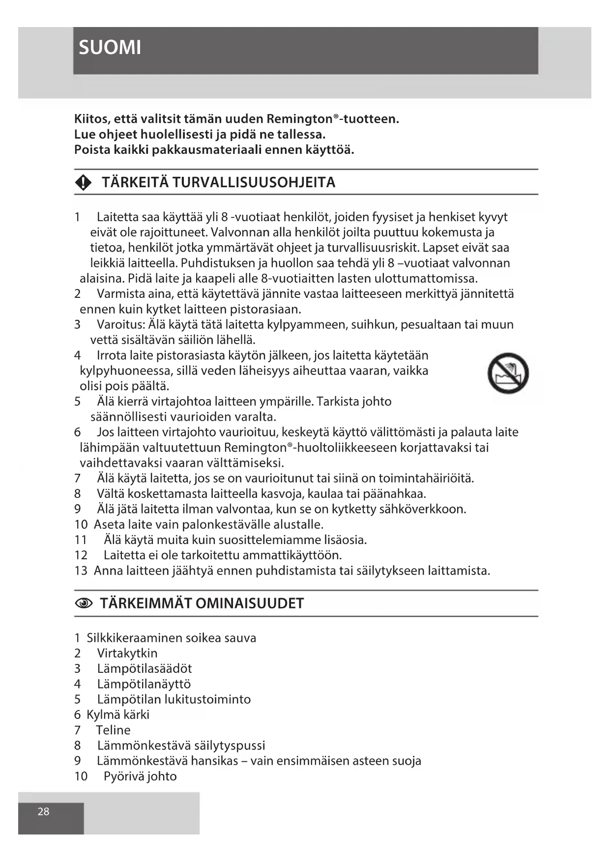 Kiitos, että valitsit tämän uuden Remington®-tuotteen.