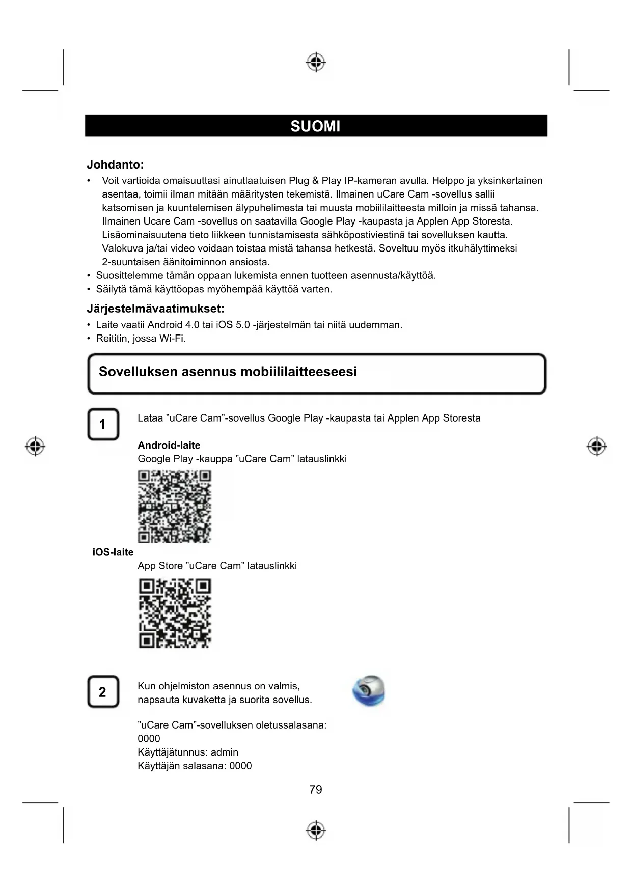 "uCare Cam"-sovelluksen oletussalasana: 0000