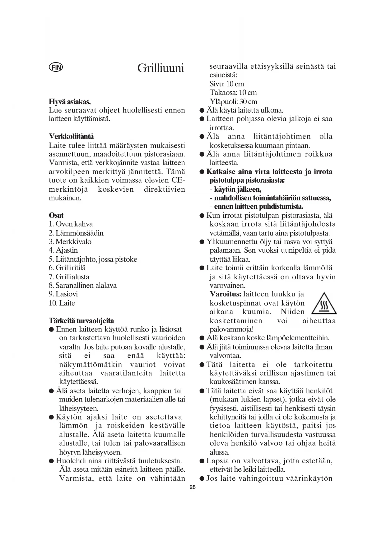 ● Laite toimii erittäin korkealla lämmöllä