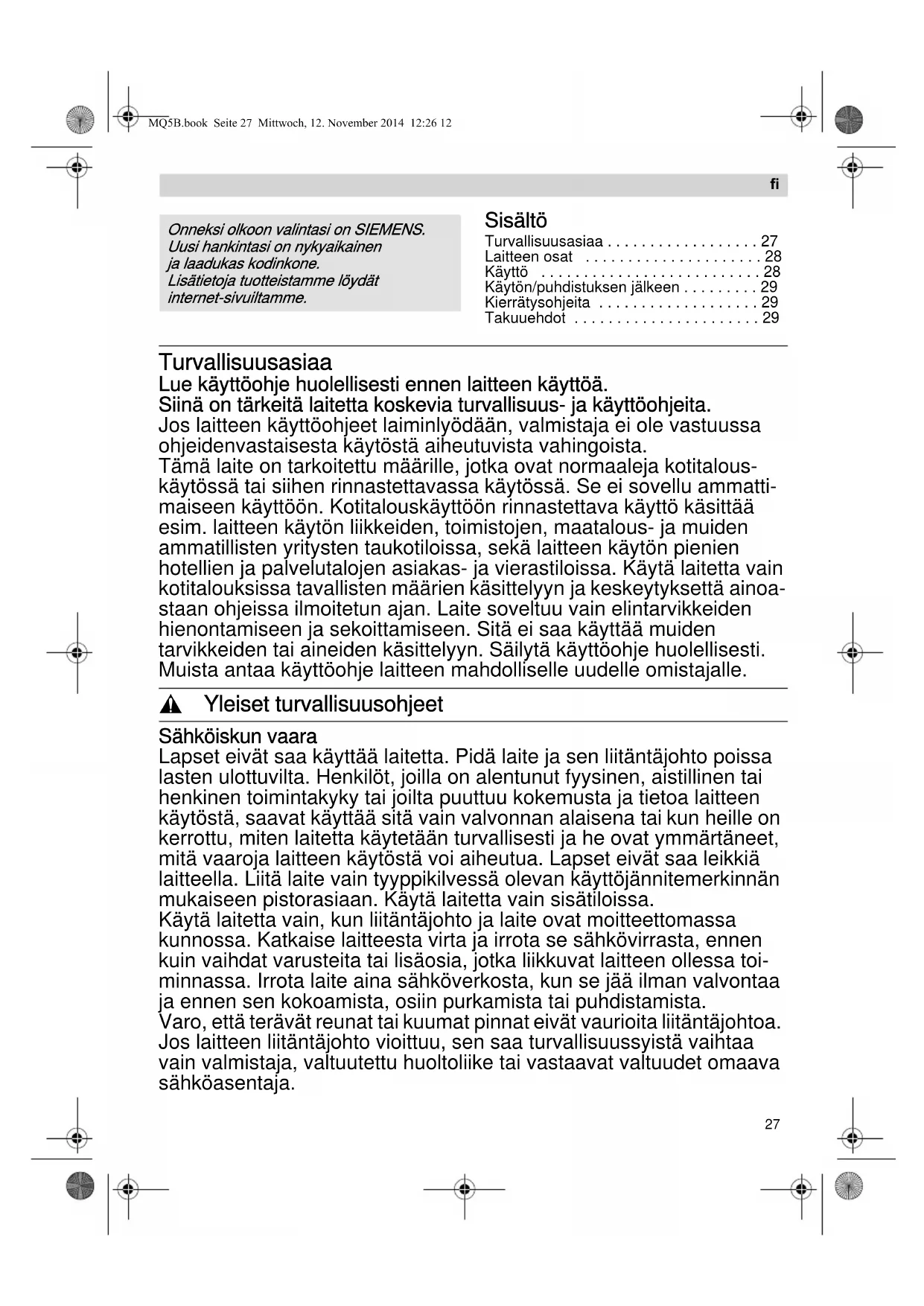 KÄYTTÖOHJE MQ5B150 SIEMENS