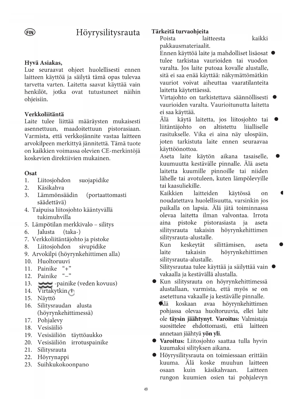 ole täysin jäähtynyt. Varoitus: Valmistaja