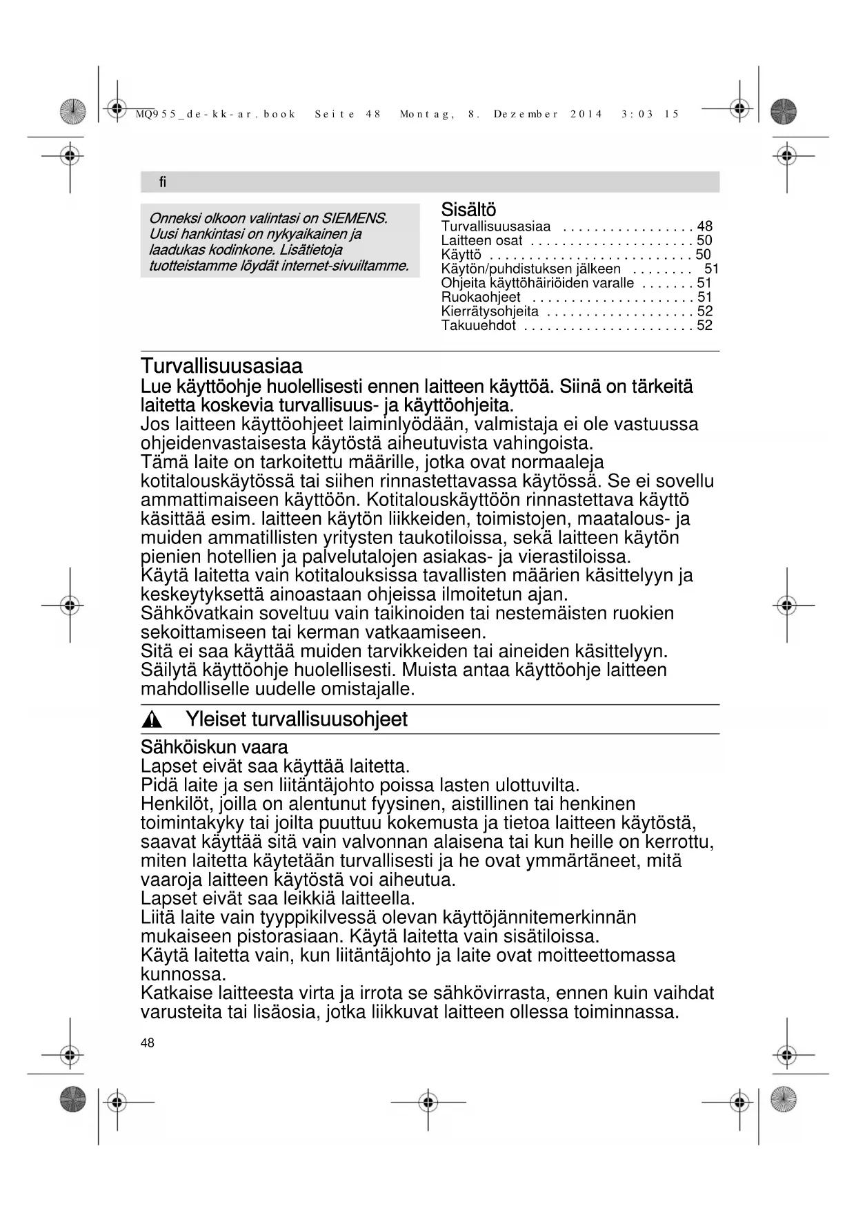 tuotteistaззe löуdät internet-sivuiltaззe. MQ955_de-kk-ar.book Seite 48 Montag, 8. Dezember 2014 3:03 1549