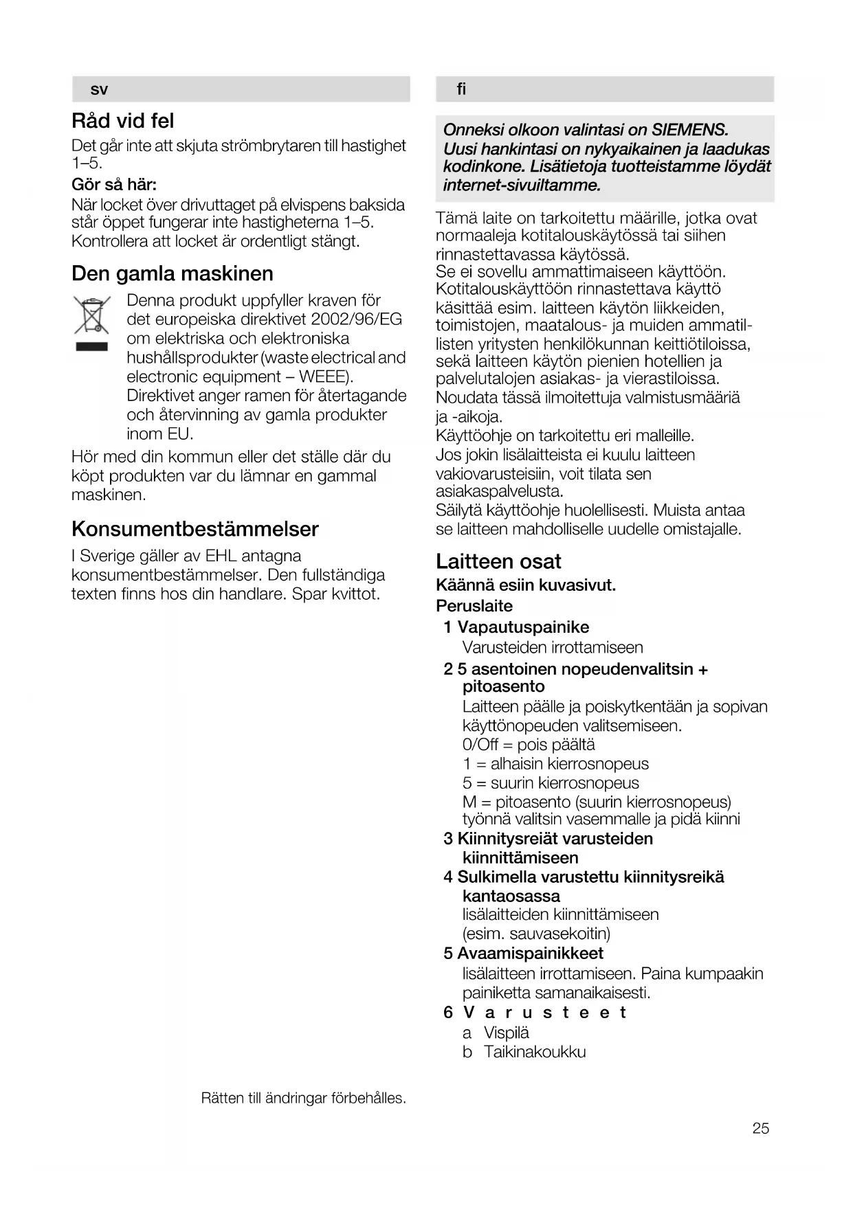 KÄYTTÖOHJE MQ955PX SIEMENS