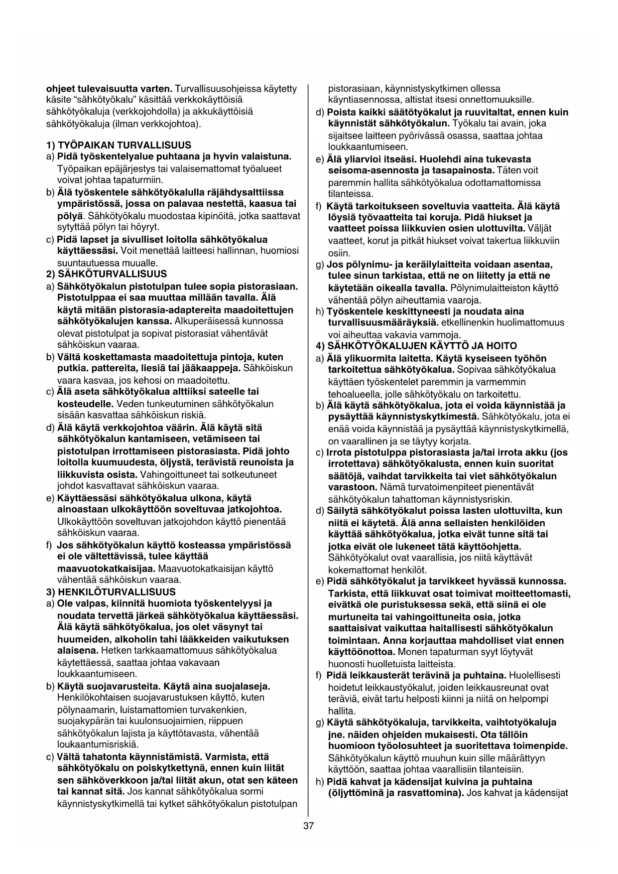 4) SÄHKÖTYÖKALUJEN KÄYTTÖ JA HOITO