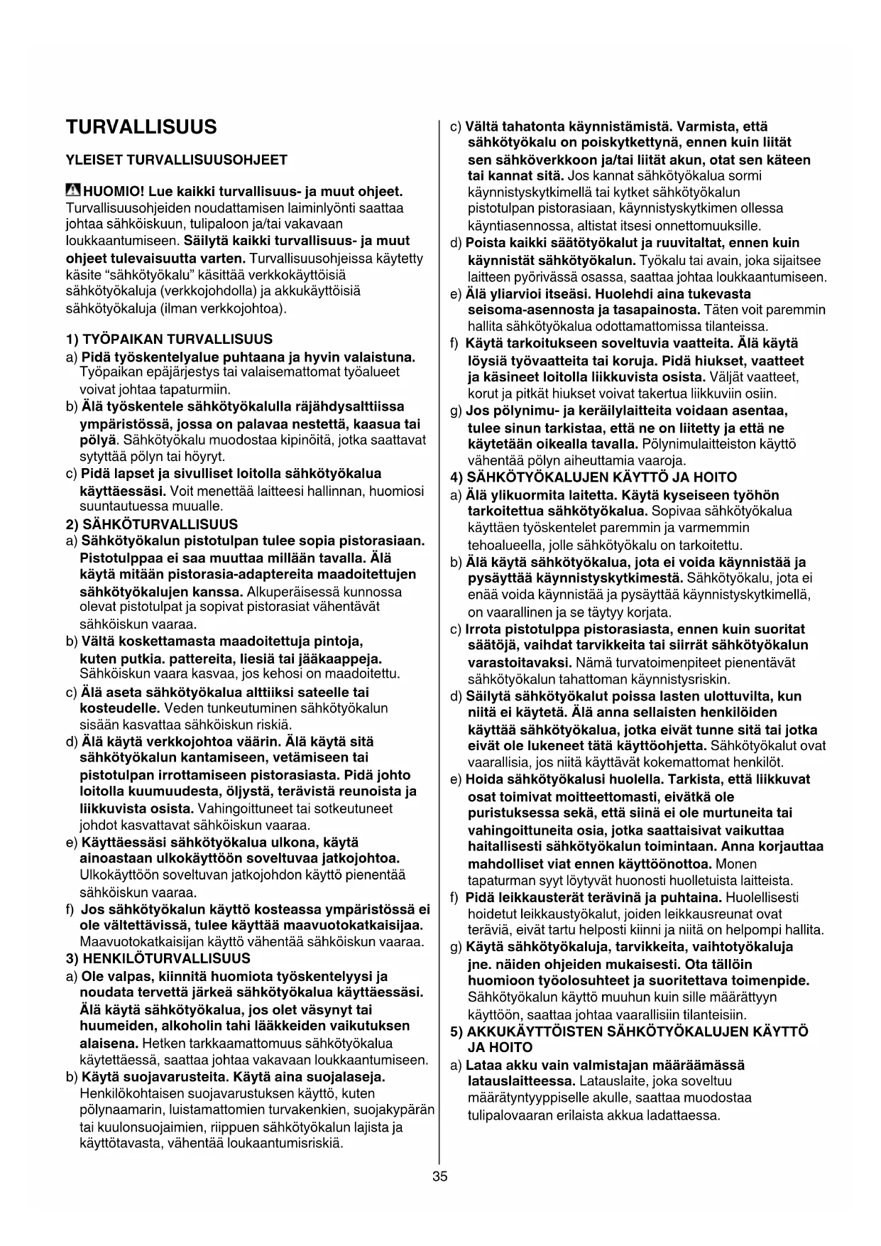TURVALLISUUS YLEISET TURVALLISUUSOHJEET HUOMIO! Lue kaikki turvallisuus- ja muut ohjeet.