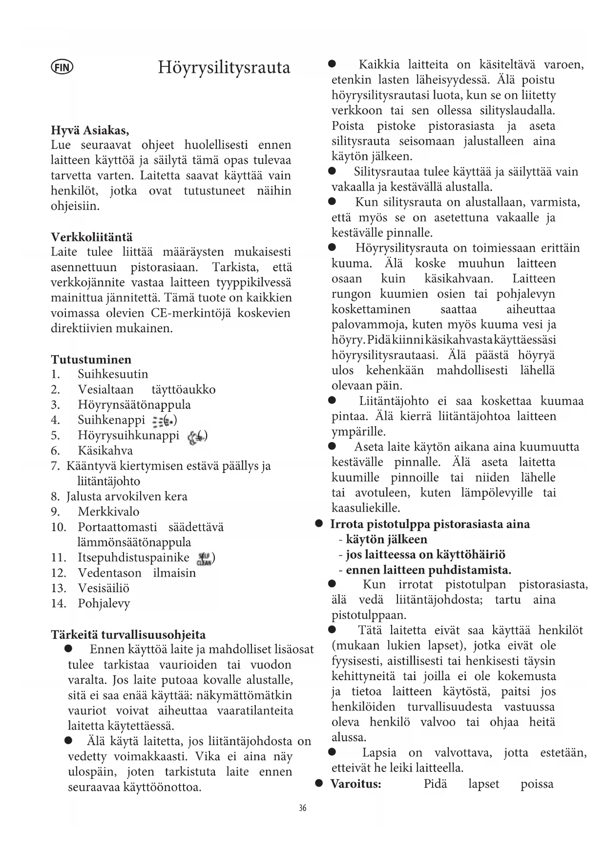 höyry. Pidä kiinni käsikahvasta käyttäessäsi