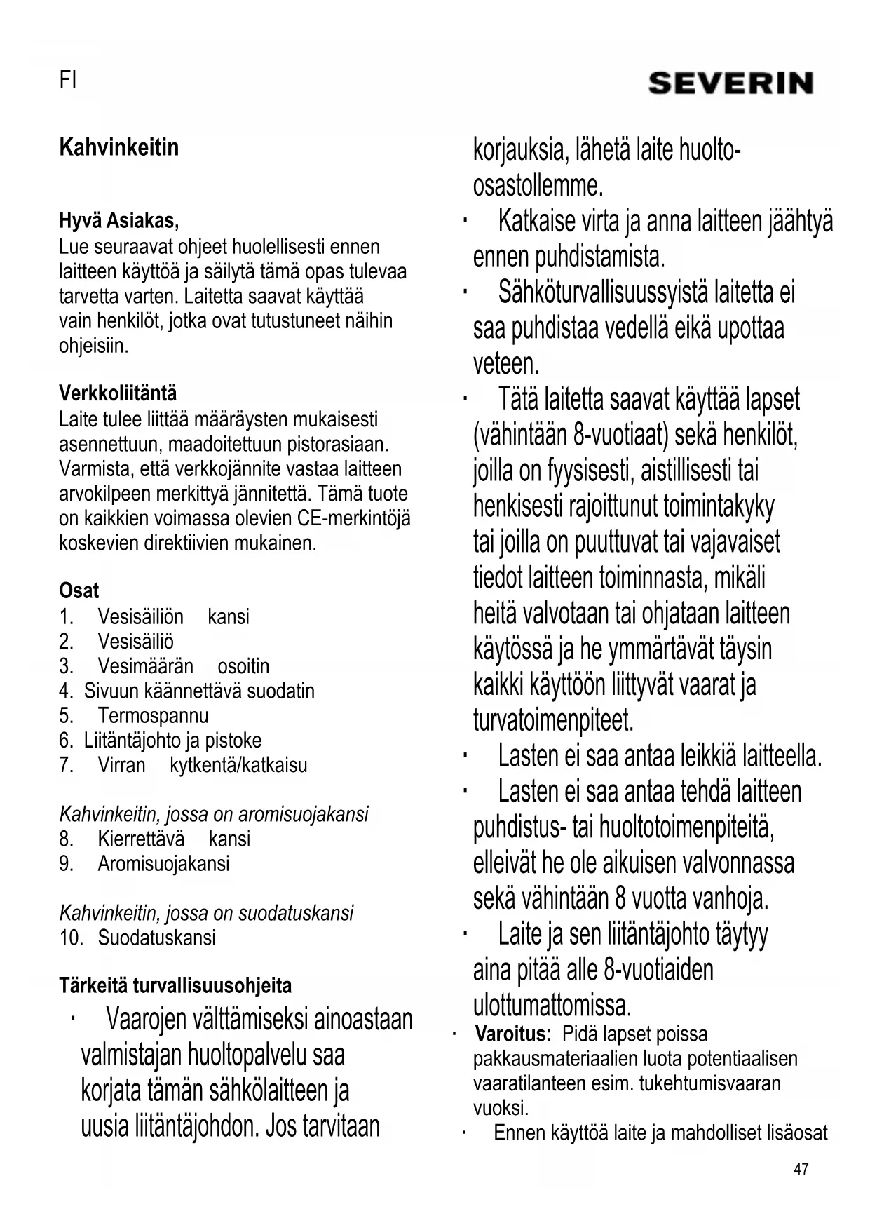 KÄYTTÖOHJE KA 9485 SEVERIN