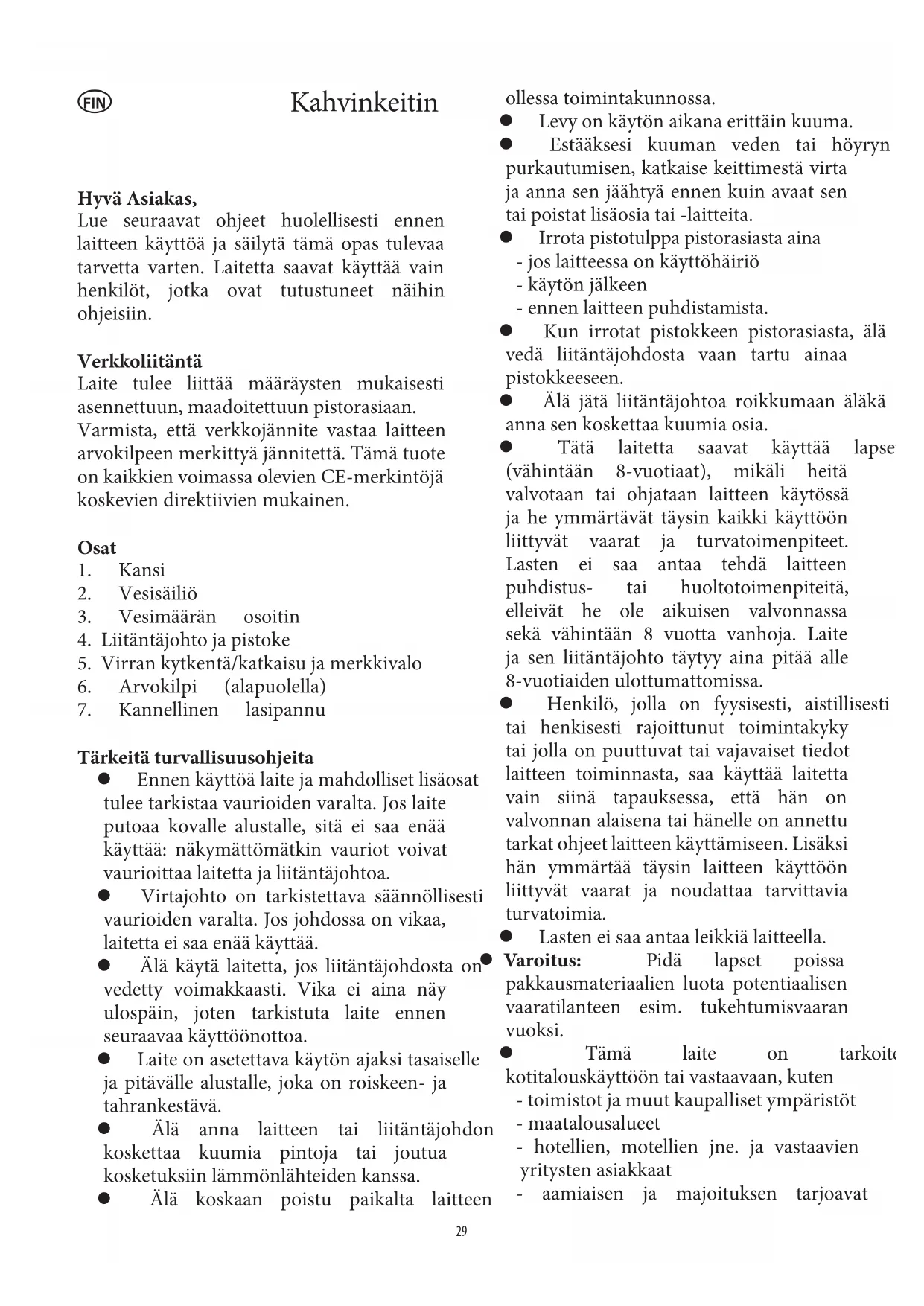 Tärkeitä turvallisuusohjeita