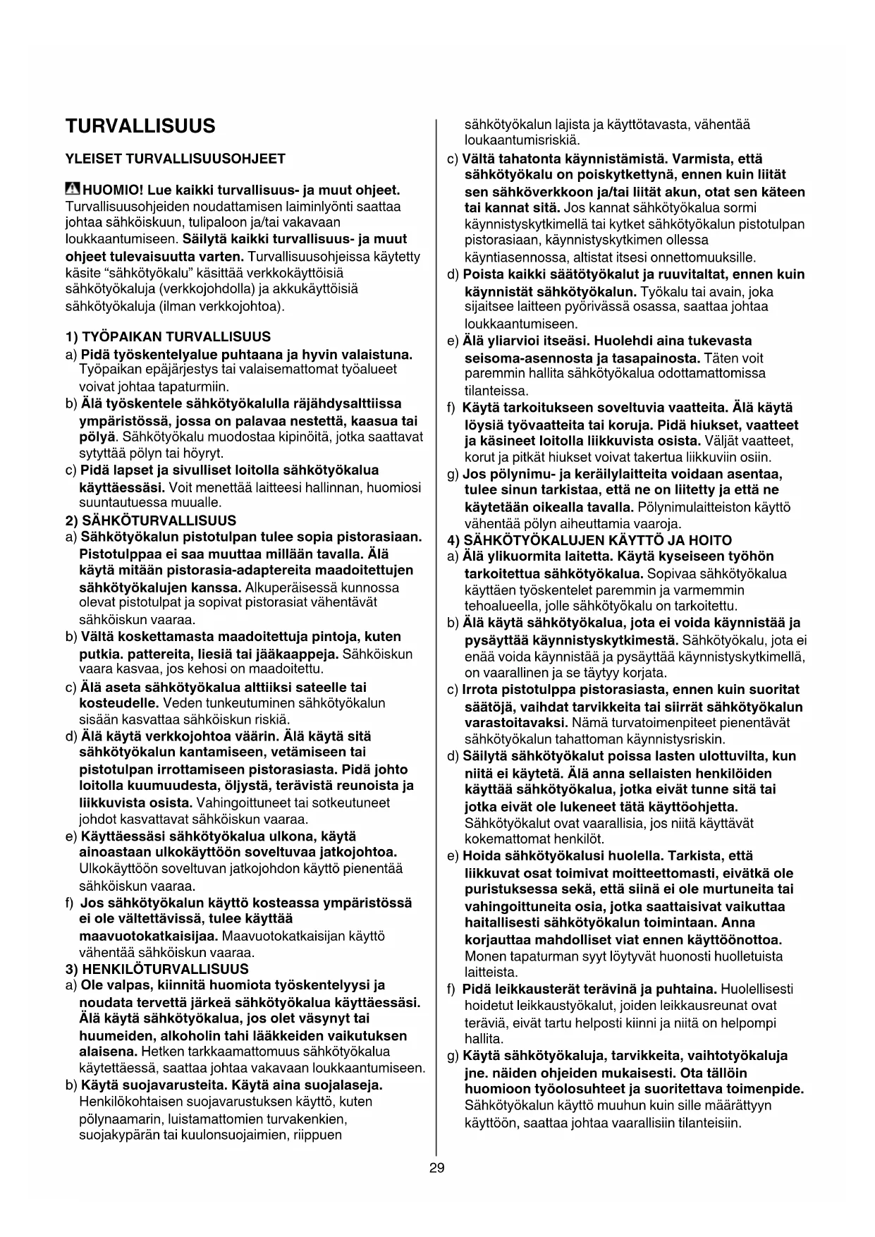 4) SÄHKÖTYÖKALUJEN KÄYTTÖ JA HOITO