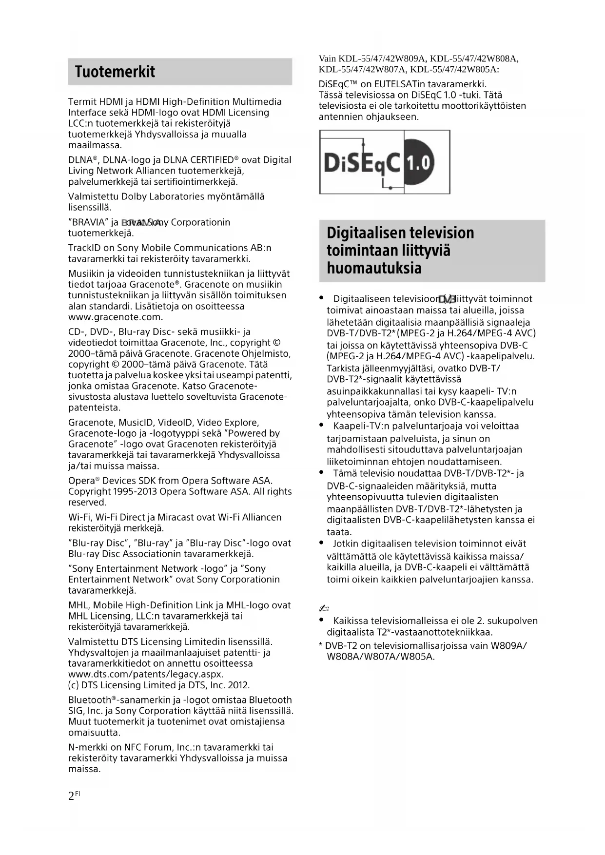 KÄYTTÖOHJE Bravia KDL42W808A SONY