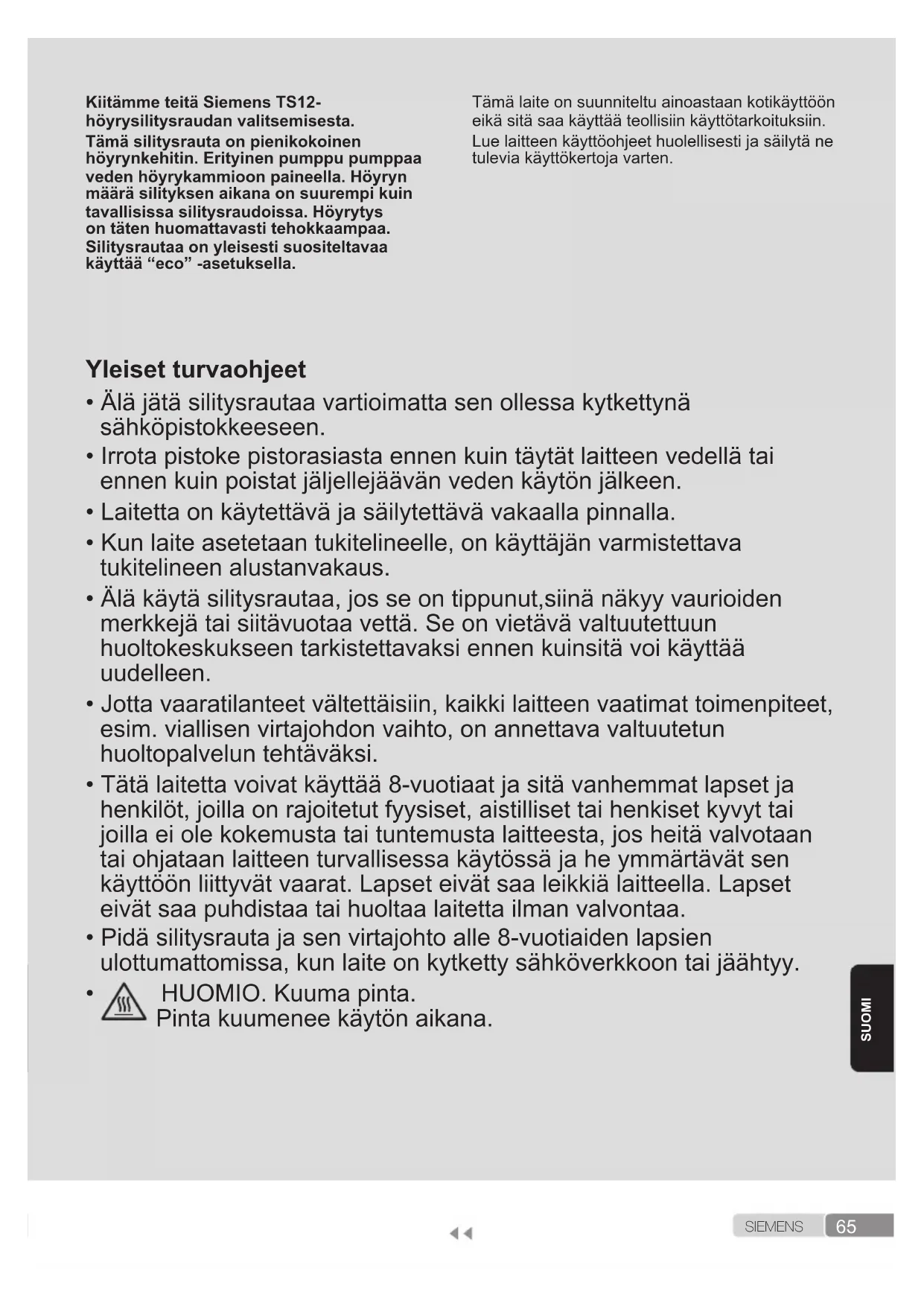 S I E M E N S SUOMI Kiitämme teitä Siemens TS12-