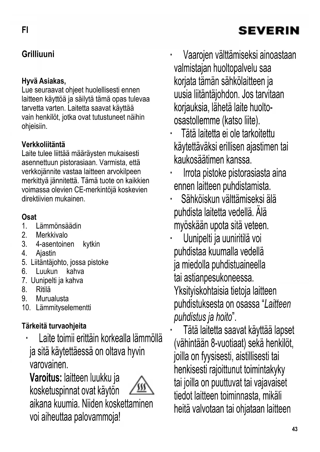KÄYTTÖOHJE TO2053 SEVERIN