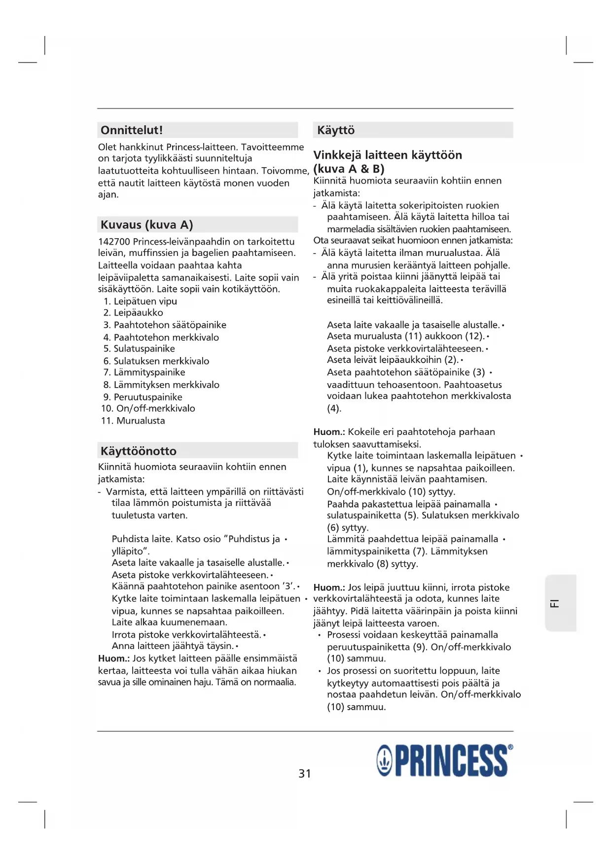 KÄYTTÖOHJE 142700 PRINCESS