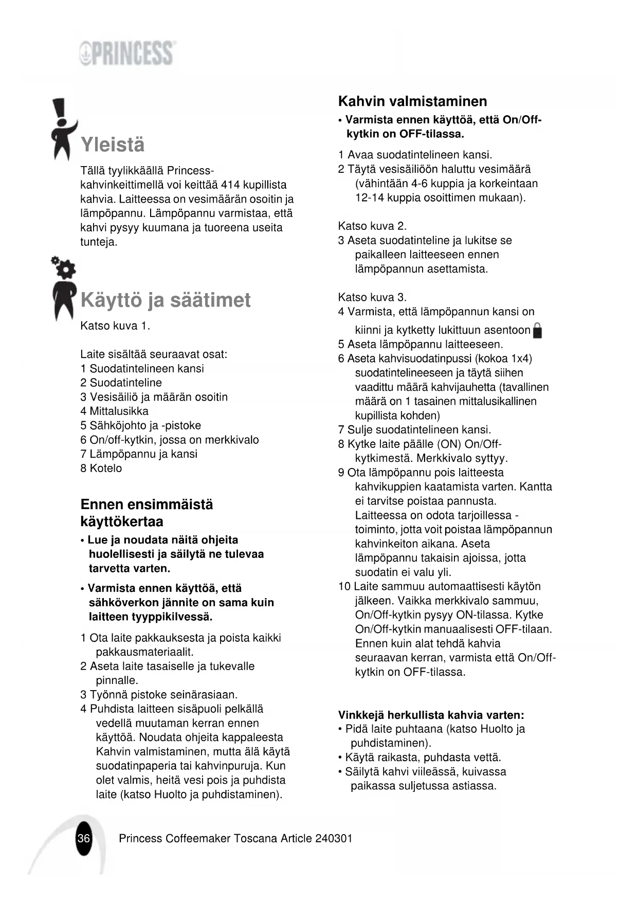 KÄYTTÖOHJE Toscana 240301 PRINCESS