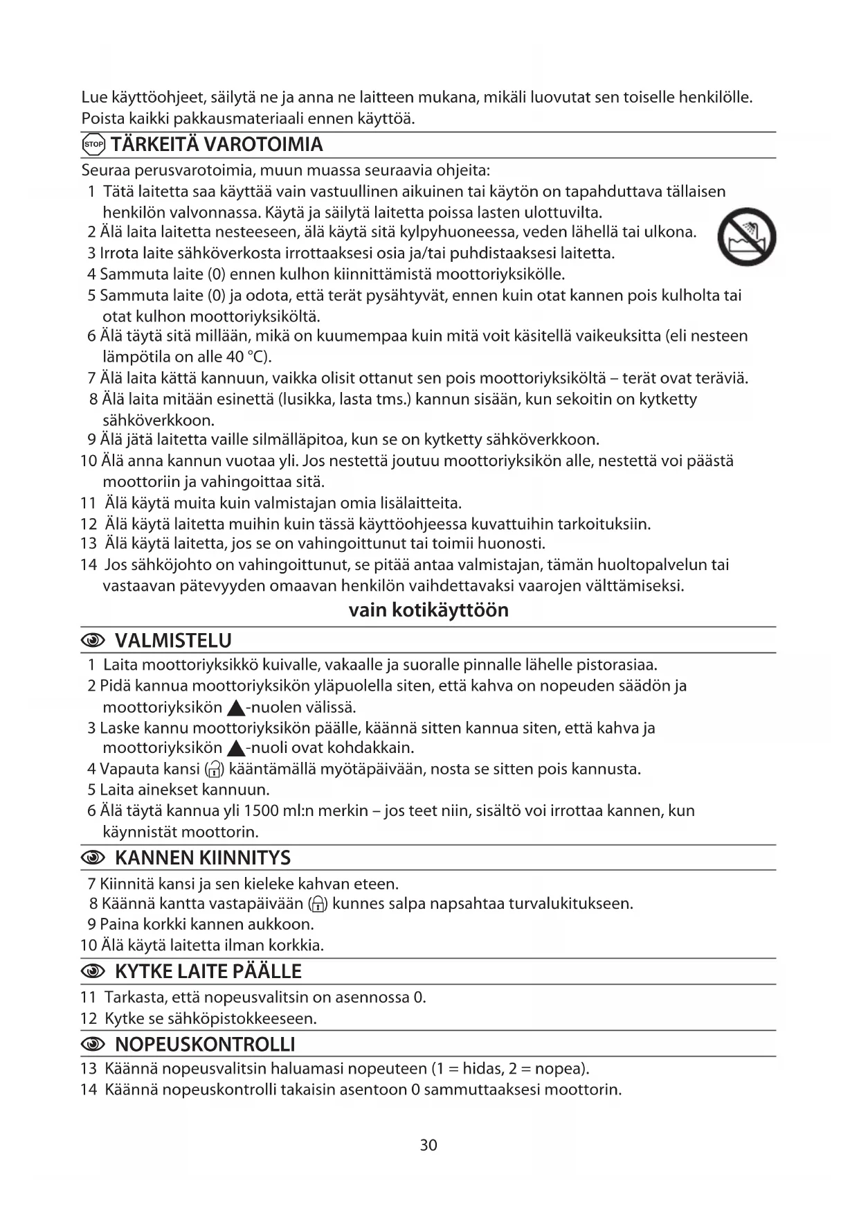 9 Älä jätä laitetta vaille silmälläpitoa, kun se on kytketty sähköverkkoon.