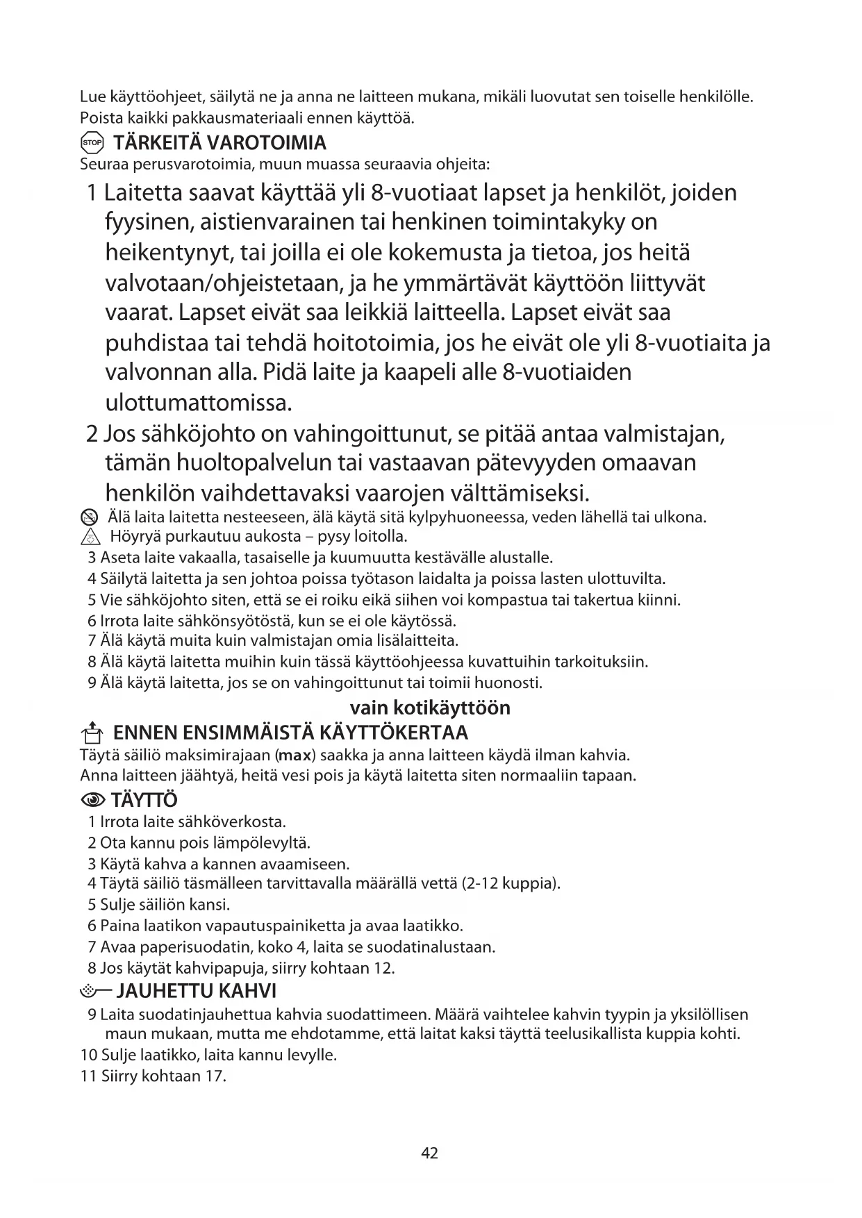 1 Laitetta saavat käyttää yli 8-vuotiaat lapset ja henkilöt, joiden