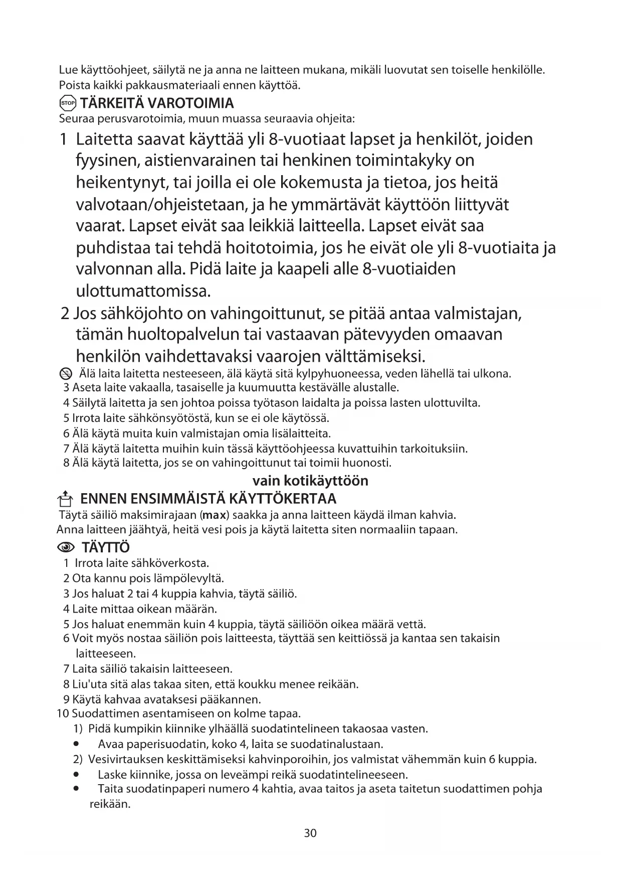 1 Laitetta saavat käyttää yli 8-vuotiaat lapset ja henkilöt, joiden