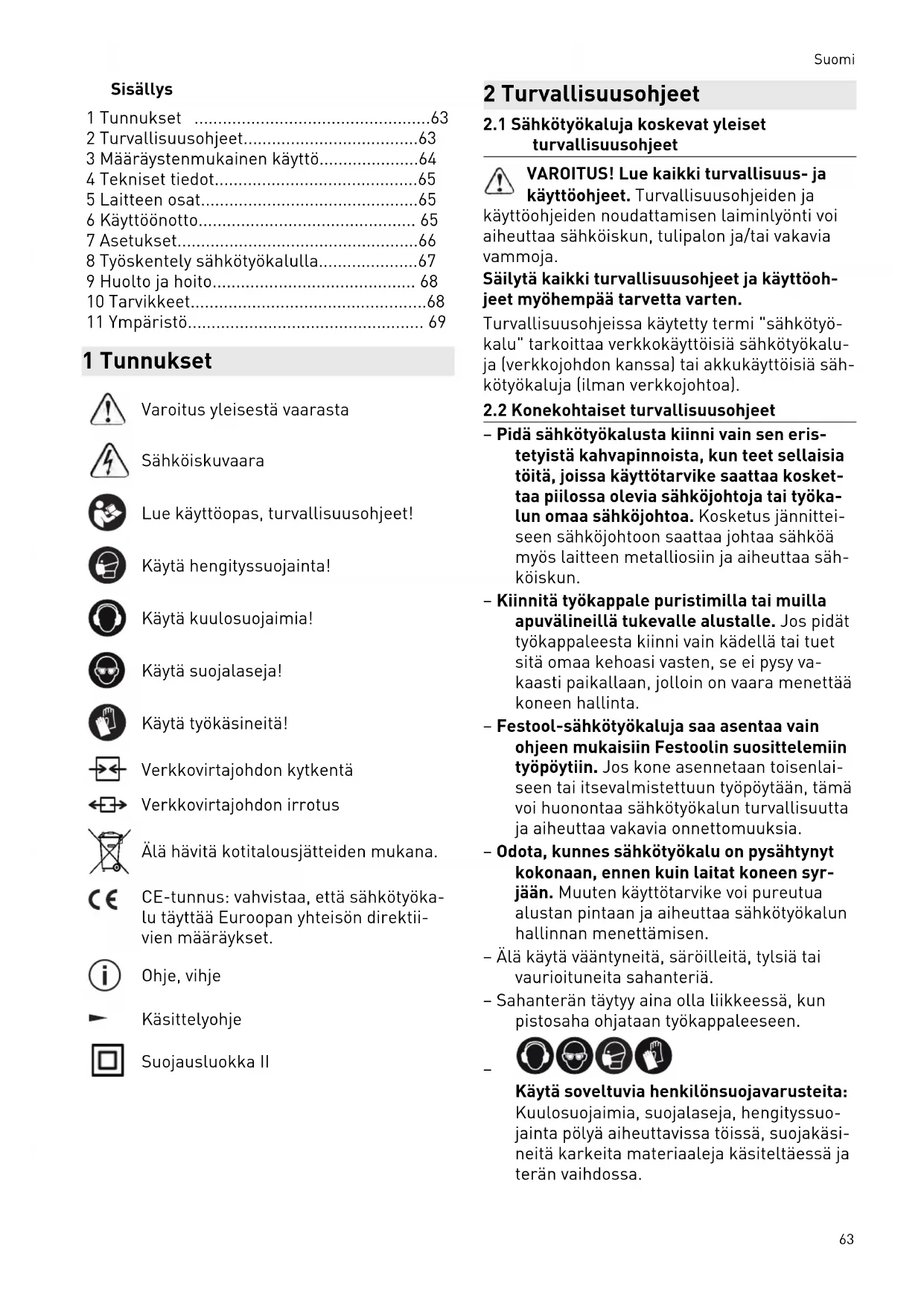 katsoa Festoolin käyttö-/tuoteoppaasta tai In
